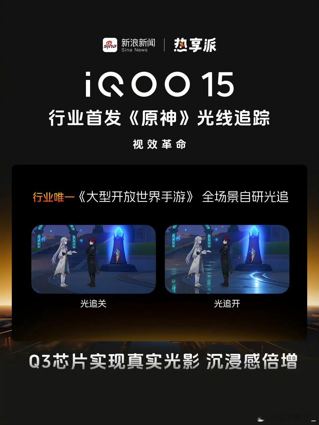 安卓首颗自研光追芯片iQOO 15这是要掀桌啊!自研电竞芯片Q3直接让手游画质起飞了。