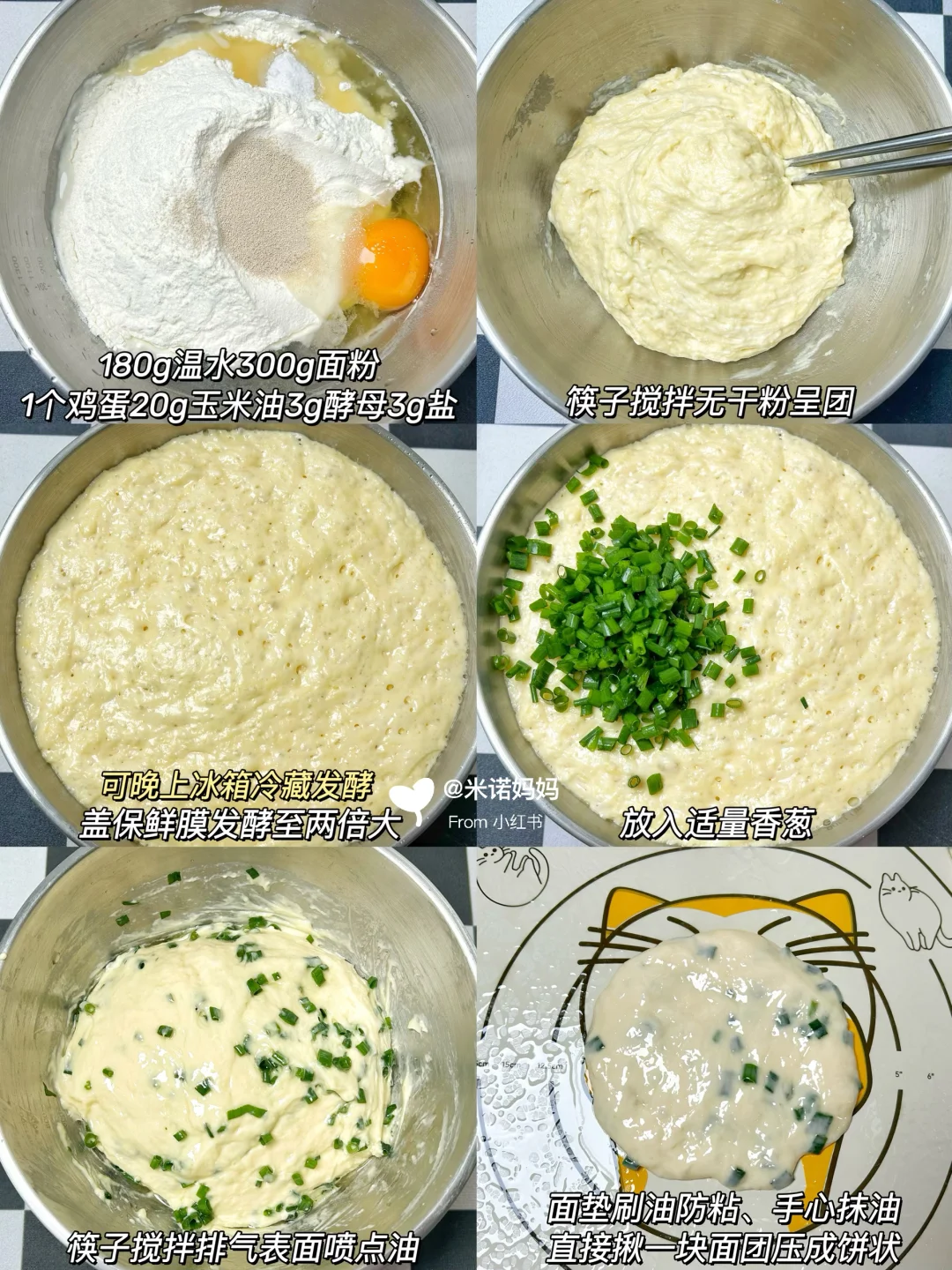 面粉300g | 温水180g | 玉米油20g | 🥚蛋1个 | 酵母3g | 盐3g | 香葱适量