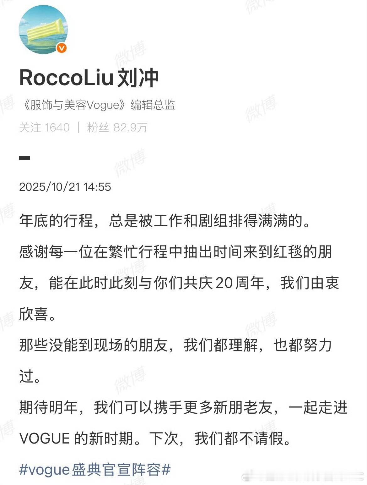 刘冲回应VOGUE阵容vogue阵容官宣为啥没有大咖去呢……最大咖就是刘亦菲了