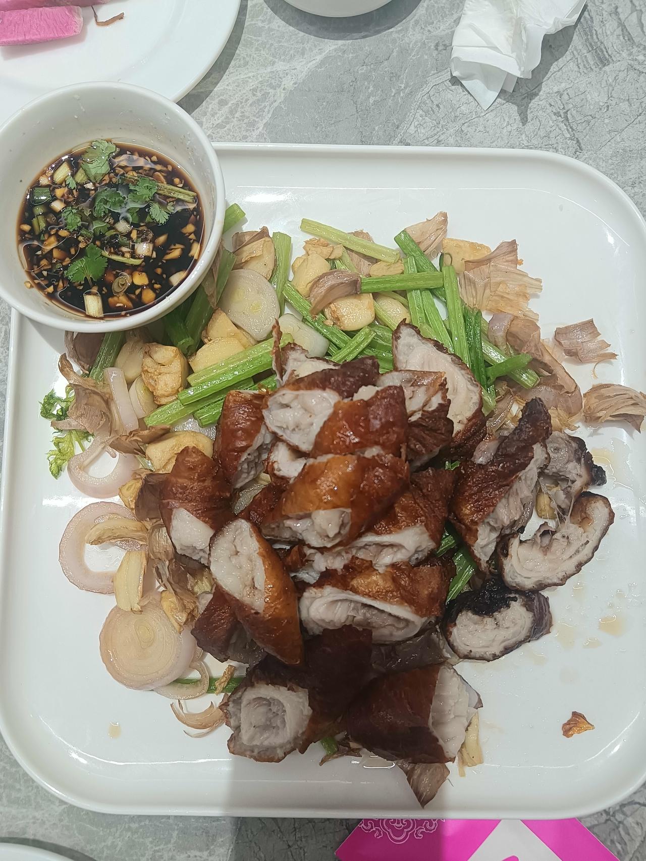都说现在不景气,但一到饭点,你看吧,各个营业中的饭店哪家客人都不少。尤其是有点特色的饭店。甚至有点一位难求的状况。 我家现在住的地方属于新小区,周边没什么像样饭店。 这几日热闹起来了。原来很多闲置的停车位,忽然间停满了车。 原来是新开了一家“老街坊杀猪大菜”。 真火,9月18日开业但今天,天天顾客盈门,甚至有排队等候的人。 今天本溪下雨,正适合杀猪菜。我和老公去体验了。真不错。 酸菜猪肉血肠铜火锅,猪肉软烂,血肠鲜美,酸菜脆爽,再撒上点翠绿的香菜葱花,美极了,真正的色香味俱全。 还要了一个绝大多数人都不会做的醋味脆皮大肠,品相有点像烤鸭,连同元葱、大蒜、芹菜等配菜,都可以蘸醋汁吃,一点都不腻,值得一尝。 另外,饭店米饭免费,水果免费,小咸菜免费。点赞! 6点多我们吃完往出走的时候,还有陆续到店的顾客在排位。 虽说生活中难免有不如意的事,但平凡日子的人间烟火也总能让你品出些许的舒适甜蜜。 我的生活日记