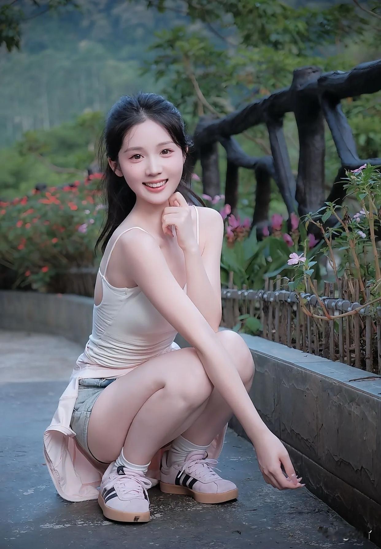 山间少女,清新自然,白色衬衫与黑色短裙的完美搭配,尽显青春活力!🌿💚高帮帆布