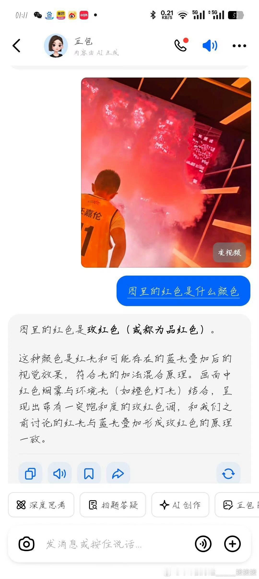 任嘉伦粉丝澄清,蓝光和红光一起会变成玫红色,不是p了图