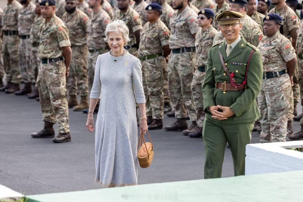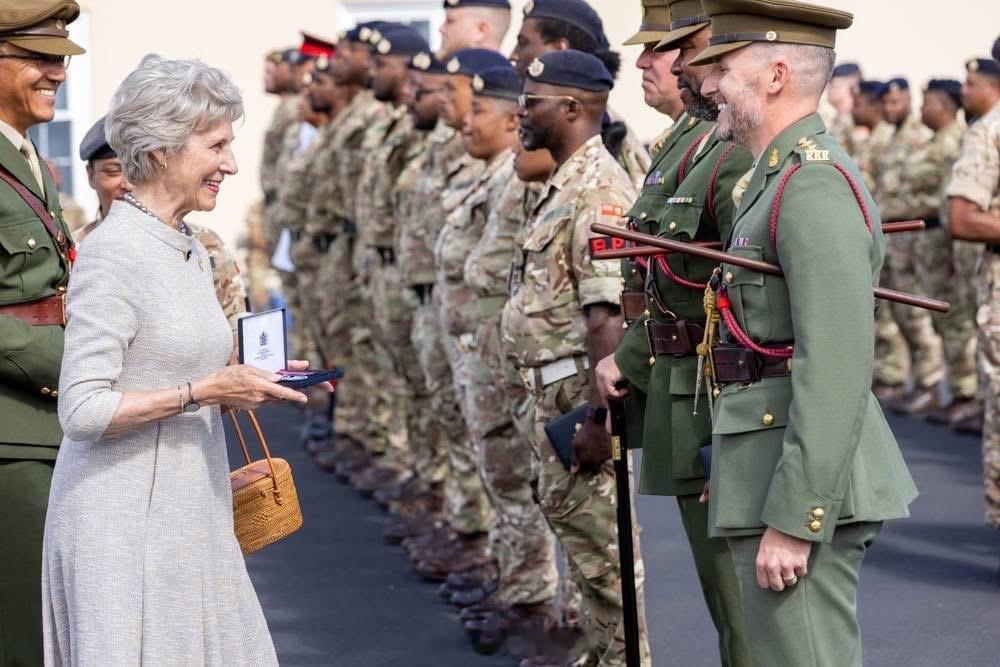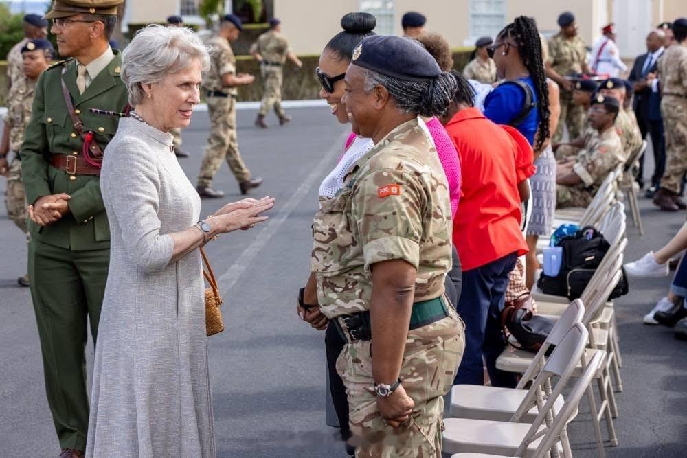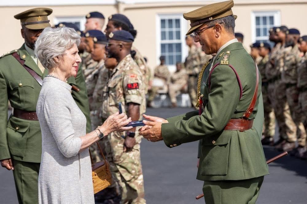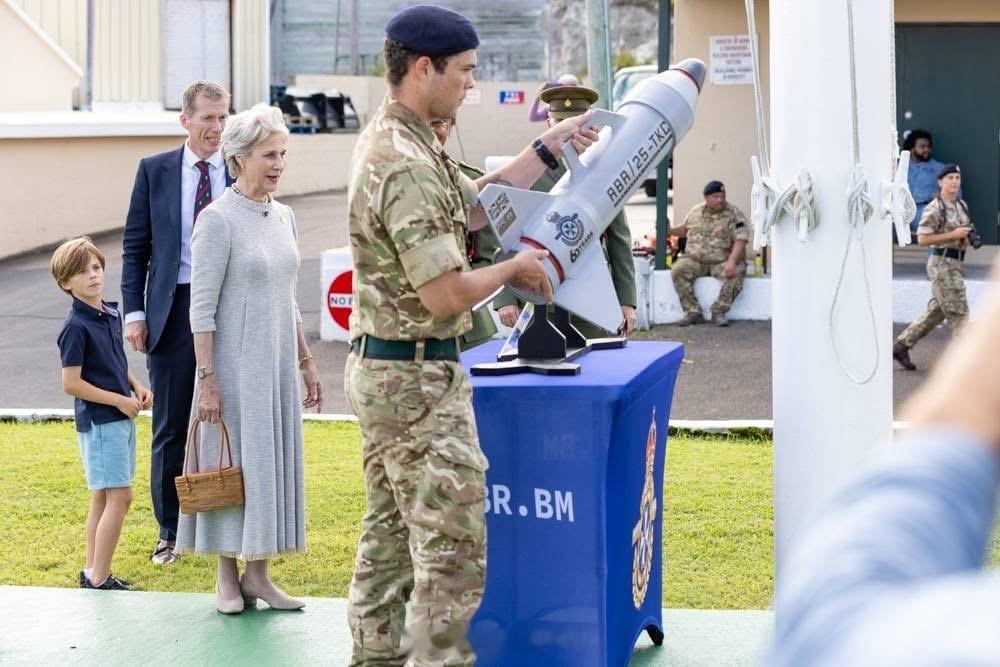 【补图】2025年10月19日,作为皇家百慕大团成立6️⃣0️⃣周年庆祝活动的一部分,格洛斯特公爵夫人比尔吉特在百慕大沃里克兵营向皇家百慕大团颁发勋章,还有种植军团时间胶囊🇧🇲
