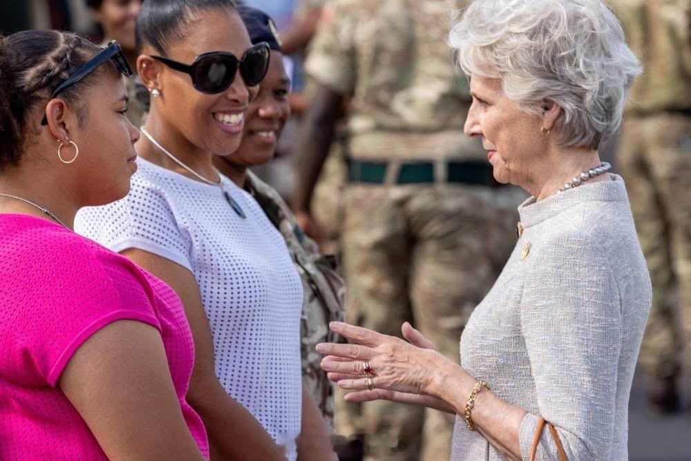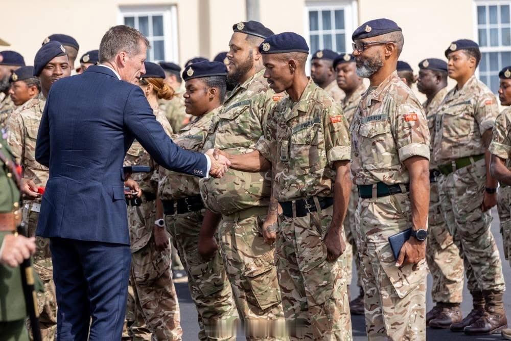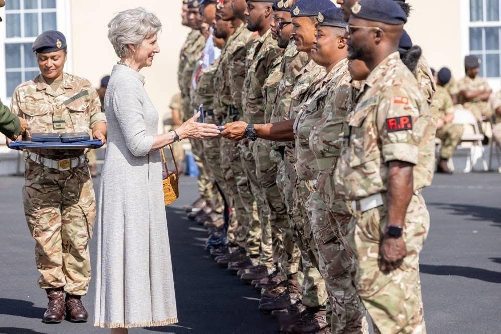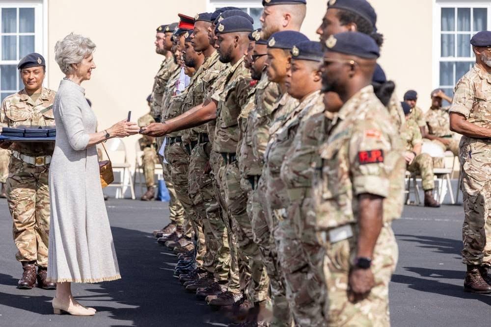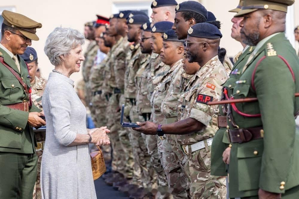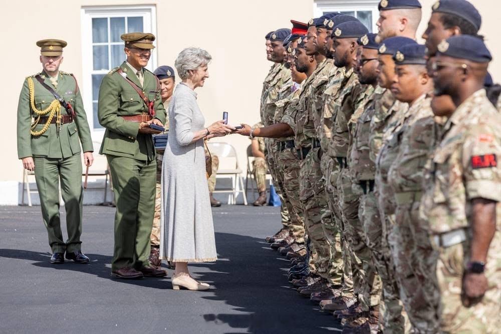 【补图】2025年10月19日,作为皇家百慕大团成立6️⃣0️⃣周年庆祝活动的一部分,格洛斯特公爵夫人比尔吉特在百慕大沃里克兵营向皇家百慕大团颁发勋章,还有种植军团时间胶囊🇧🇲