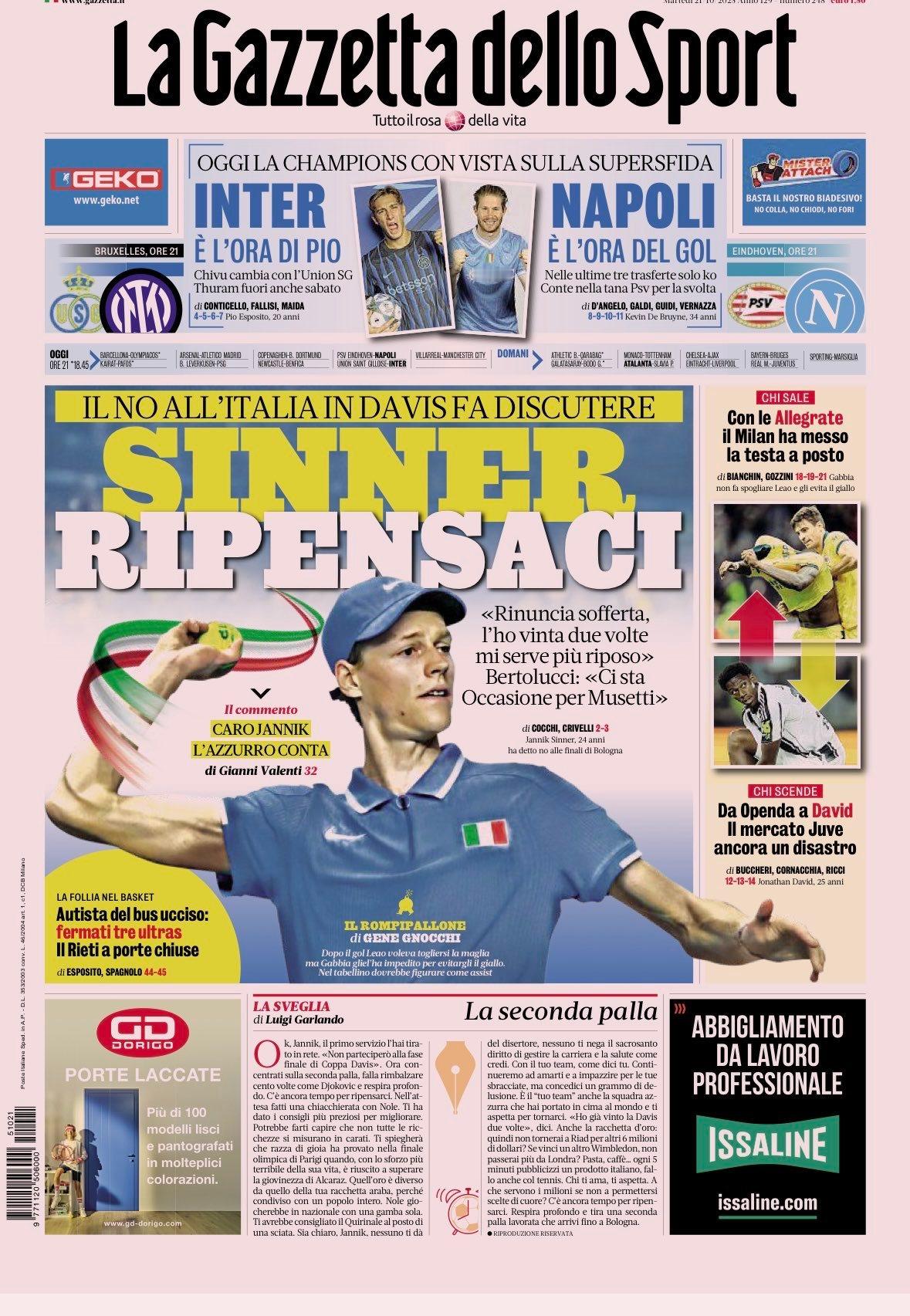“这是狠狠打了意大利体育的脸。我很难想象他说这是艰难的决定,这是打网球,又不是让你上战场。说起戴维斯杯,那可是重中之重,穿上那件蓝色战袍是每个球员的目标。不幸的是,我谈论的是另一个时代,如今一切都被金钱驱使,真心已经被放到一边去了。”