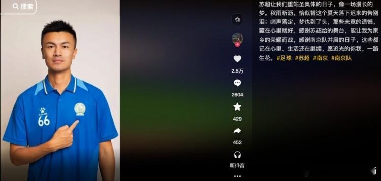 “苏超”半决赛,南京队在点球大战中不敌泰州队,无缘决赛。赛后,南京队球员戈伟更新了个人社交媒体。