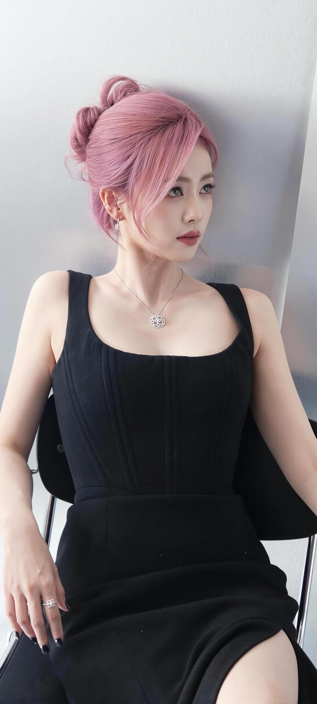 白鹿,粉色少女心与黑色连衣裙的完美碰撞,时尚又优雅!💖👗💻白鹿白鹿穿搭