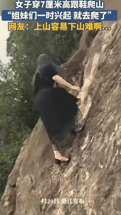 浙江,女子和小姐妹在公园闲逛,一时兴起决定去攀岩,于是就穿着7厘米细高跟鞋和纱裙爬上了岩壁,她觉得很简单,还挑战了难度最高的4号线,网友直呼“太飒了!”。 视频中,她在陡峭的岩壁上轻盈攀爬,非常的优雅,细高跟精准卡在岩缝找支撑点,动作行云流水。同行的朋友还调侃她爬起来像岩羊一样灵活。 她说自己平时就喜欢玩户外、攀岩和徒步,所以并不觉得穿高跟鞋有什么大不了,还笑称强者从不抱怨环境。 虽然看起来很酷,但高跟鞋攀岩风险很高。细鞋跟难以稳定支撑身体重量,岩面凸起可能卡住鞋跟导致失衡,也没有专业攀岩鞋的防滑和支撑功能。 还有飘逸的纱裙也可能被岩石勾住,即使她有丰富经验,也离不开运气成分,一旦发生意外,后果不堪设想。 欣赏她的勇气,但不赞同这种做法。建议各位女同胞不要轻易模仿,而且女子后面也承认了下不去,把鞋脱了光脚下去的。 攀岩需要专业装备和训练,不是穿高跟鞋炫技的场合。真正的勇敢是认清风险,用安全方式突破自我。 极限运动的魅力在于挑战自我,但安全永远是第一位的。毕竟只有活着,才能继续享受运动带来的快乐和成就感。