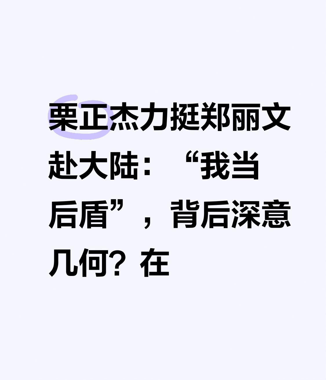 栗正杰力挺郑丽文赴大陆:“我当后盾”,背后深意几何? 在两岸交流的动态版图中,又有一则消息引发了广泛关注——栗正杰公开表示支持郑丽文赴大陆,还信誓旦旦地称“我当后盾”。这简短的话语,宛如一颗投入平静湖面的石子,激起了层层涟漪。 二人形象:观点碰撞的两岸“明星” 栗正杰和郑丽文在两岸话题的舆论场上,一直是备受瞩目的人物。栗正杰言辞较为直率,在诸多两岸关系的议题上有着自己鲜明的观点,往往能以通俗易懂又不失深度的表达,赢得不少民众的关注。他在一些节目与发言中,展现出对两岸交流合作积极的态度,希望看到两岸和平发展的局面。 而郑丽文,也是一位颇具争议性的公众人物。她在台湾地区政治与媒体领域较为活跃,过往在两岸问题上的态度复杂多变。有时言辞犀利,有时又展现出对两岸民间交流的某种认可。她的立场和言论如同一个多面镜,反射出不同角度的两岸认知。 发声原因:顺应潮流与个人考量 栗正杰发出这样的支持声,背后有着多方面的因素。从大环境来看,当下两岸民间交流合作的需求与呼声日益高涨。经济上,两岸有着广阔的合作空间和潜力,众多台湾企业和民众渴望在大陆市场寻求更多机遇;文化上,同根同源的血脉亲情让两岸同胞有着强烈的交流愿望。栗正杰支持郑丽文赴大陆,也是顺应了这种和平交流、融合发展的大势。 从个人层面来讲,栗正杰或许是出于对两岸和平的真诚期盼,希望通过支持郑丽文赴大陆交流,为两岸民间互动搭建更多桥梁。也有可能是他看到了郑丽文赴大陆交流可能带来的积极影响,比如促进两岸民众之间的相互理解,减少误解和偏见。 而对于郑丽文,赴大陆或许是她重新审视两岸关系、拓展自身发展空间的一次尝试。随着大陆的快速发展,越来越多的台湾人士意识到,融入大陆发展是大势所趋。郑丽文可能也想借此机会,深入了解大陆的真实情况,为自己在两岸事务中找到新的定位。 影响预测:交流契机与舆论波澜 栗正杰的支持发声和郑丽文可能的赴陆之行,无疑为两岸民间交流带来了新的契机。如果郑丽文顺利踏上大陆的土地,她可以亲身感受大陆的发展变化,将自己的所见所闻传递给台湾民众,这有助于打破部分台湾民众对大陆的刻板印象。 然而,这一事件也必然会在舆论场上引发波澜。在台湾地区,存在着不同的政治势力和舆论阵营。一部分支持两岸交流的民众会对此表示欢迎和肯定,认为这是增进两岸了解的好事;但也有一些“台独”势力可能会对此进行抹黑和攻击,试图给郑丽文的赴陆之行制造障碍。 总体而言,栗正杰支持郑丽文赴大陆这一事件,是两岸交流大背景下的一个小缩影。它反映出两岸民间对于交流合作的渴望,也预示着未来两岸关系在曲折中前进的态势。无论面临何种挑战,我们都期待两岸能够有更多的交流与互动,让和平与发展的阳光照亮两岸同胞的心间。让我们拭目以待郑丽文此次可能的赴陆之行,会给两岸关系带来怎样的新故事。郑丽文怒呛