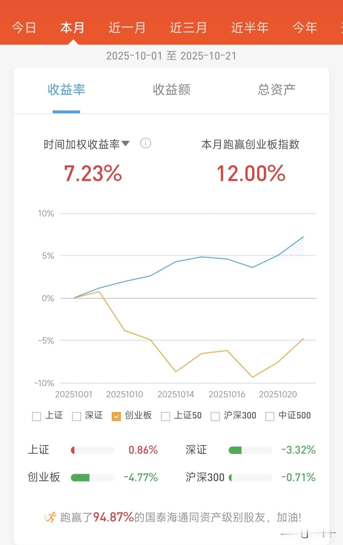 本月截至目前,盈利达7.23%,跑赢了94.87%与我在国泰海通处于同资产级别的股友。 在9个交易日里,围绕14只股票开展了41次交易,目前持仓5只股票。 除了目前手中2只股票亏损外,其余股票均实现盈利。在当下行情中,不管是踏空,还是卖飞,只要保证手上的股票能盈利,就没什么可遗憾的。证券炒股 上海炒股 国泰海通