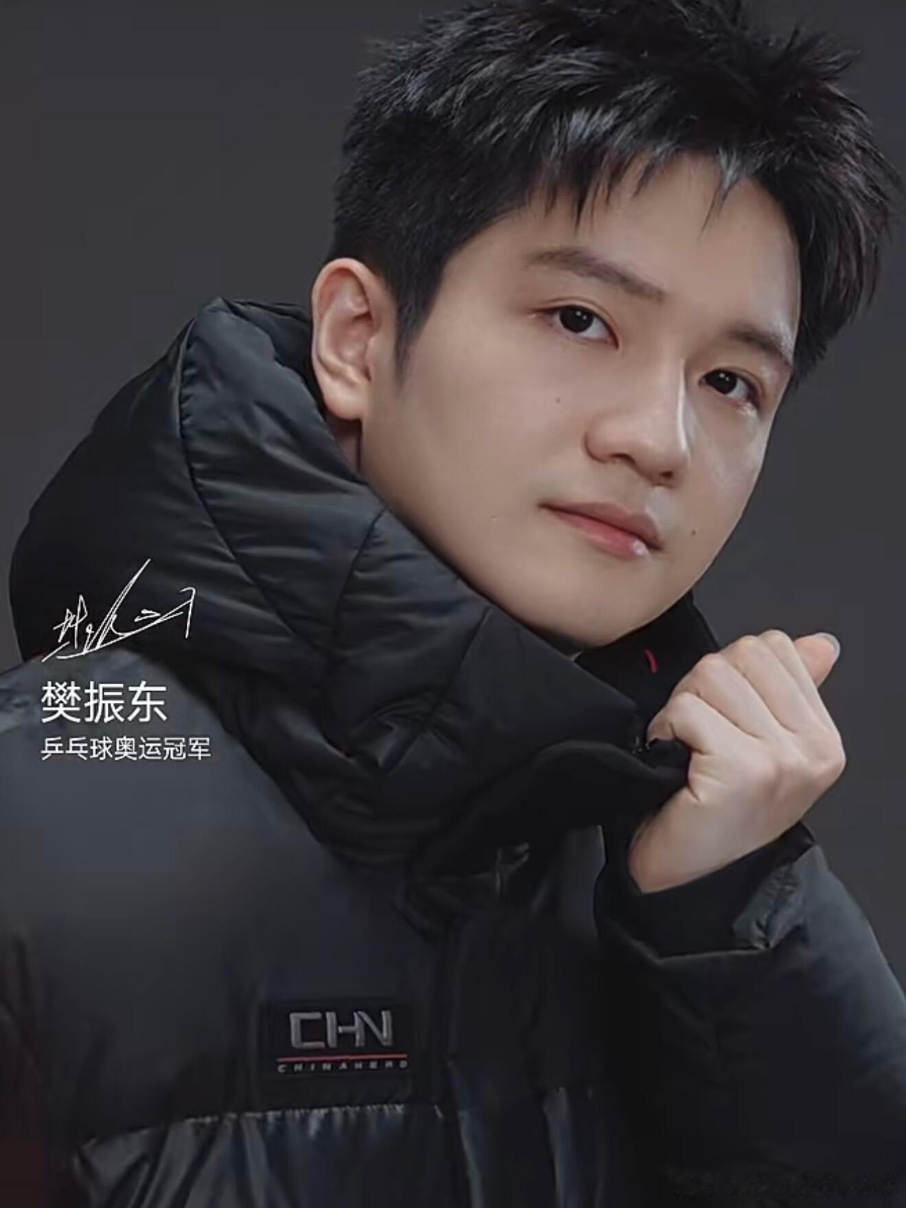我敲,樊振东穿安踏这件黑色羽绒服不要太帅