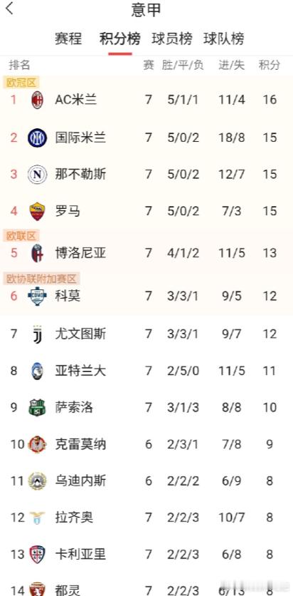 目前,蓝黑军团在联赛取得 5胜2负,积15分,凭借净胜球优势排名第二,仅落后同城对手米兰 1 分。球队的 18粒进球、净胜球+10以及16次助攻,都是意甲第一。进球来自全队 9名不同球员——包括四大前锋、中场恰尔汗奥卢、巴雷拉,双翼卫邓弗里斯、迪马尔科,以及后防核心巴斯托尼。相比之下,主要竞争对手米兰、尤文、那不勒斯各有 8 人破门,博洛尼亚 6 人,科莫与罗马仅 5 人。