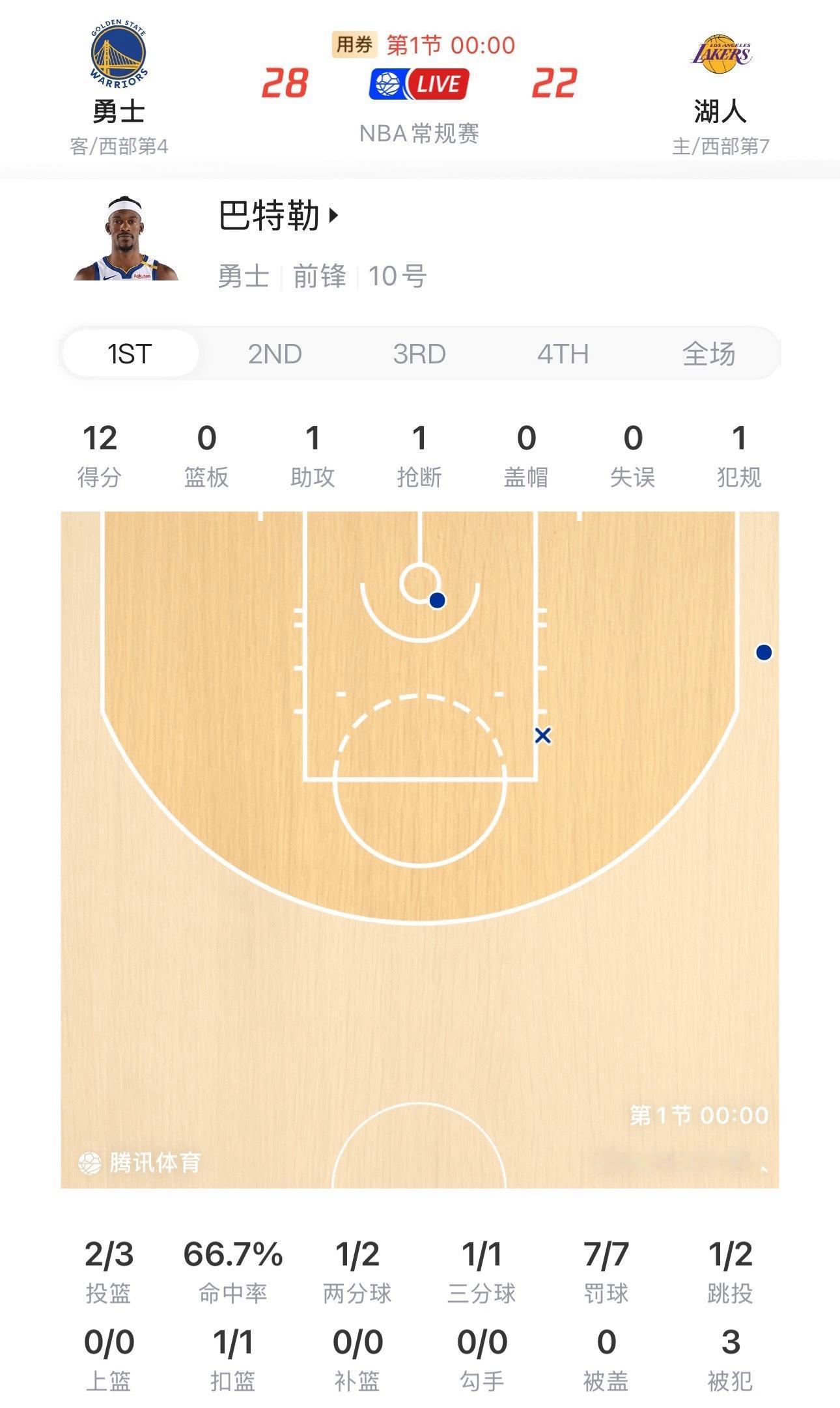 第一节结束,巴特勒拿下12分,罚球7中7,球场万金油,他可太全能了!