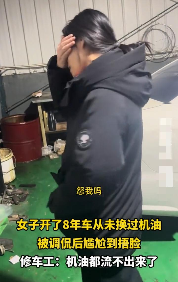 近日河南郑州,一女子买了8年的车,今天到店里修车,结果师傅问了一个问题,女子直接尴尬到捂脸! 师傅给她车子一检查,发现机油都结成块了,于是问她:你这车子开了8年了,换过机油吗?女子惊了:什么?还要换机油的?我不知道啊!师傅被女子给乐笑了!车辆平常保养知识女子可能压根就没有,光知道开了!