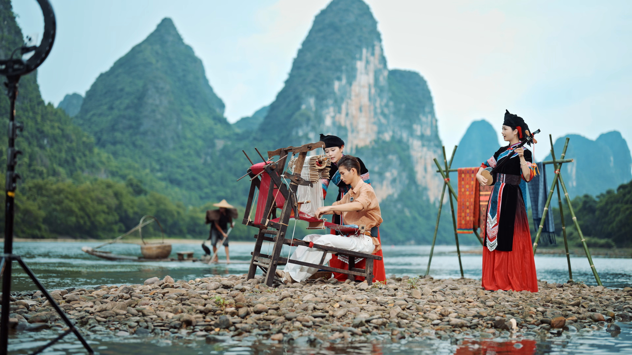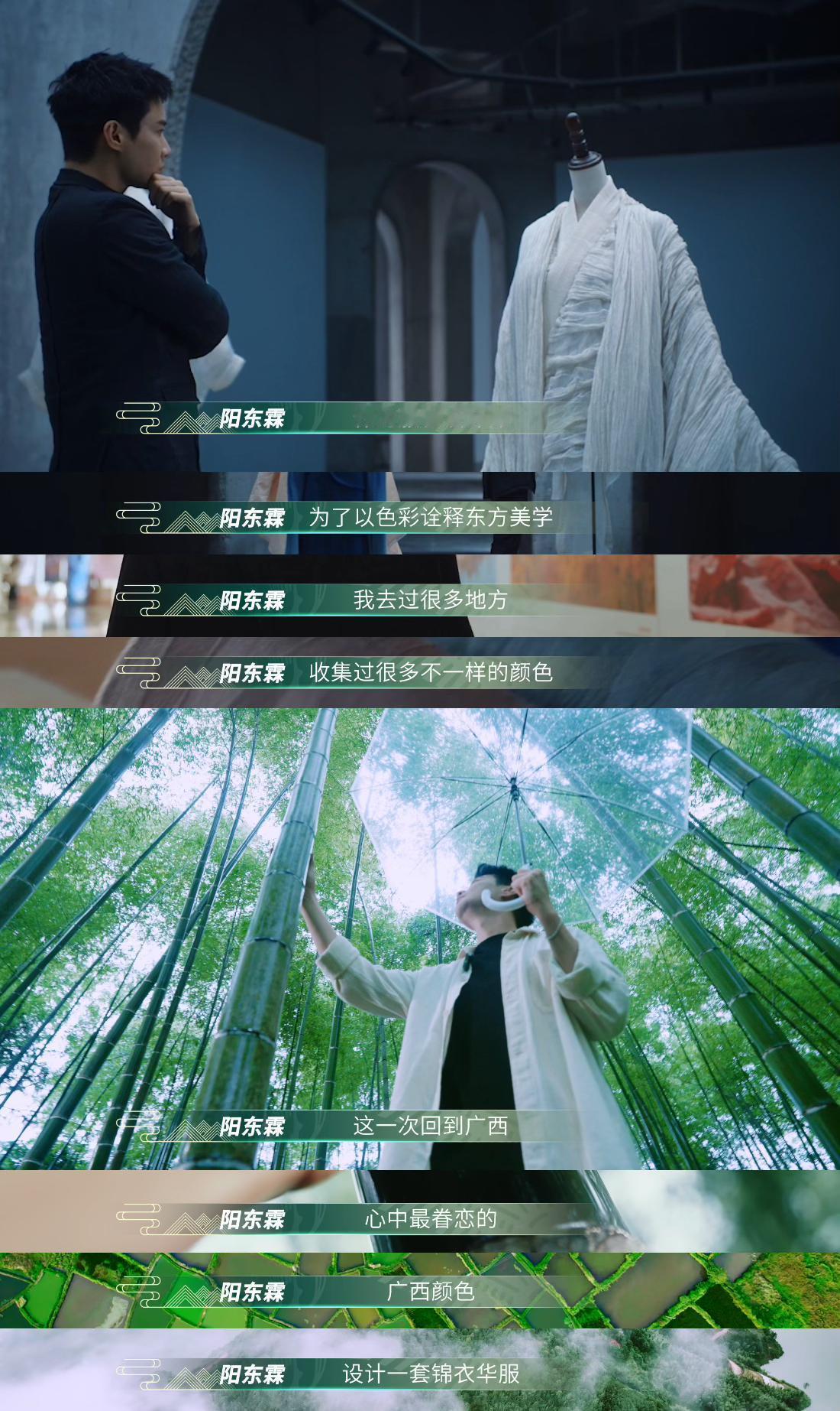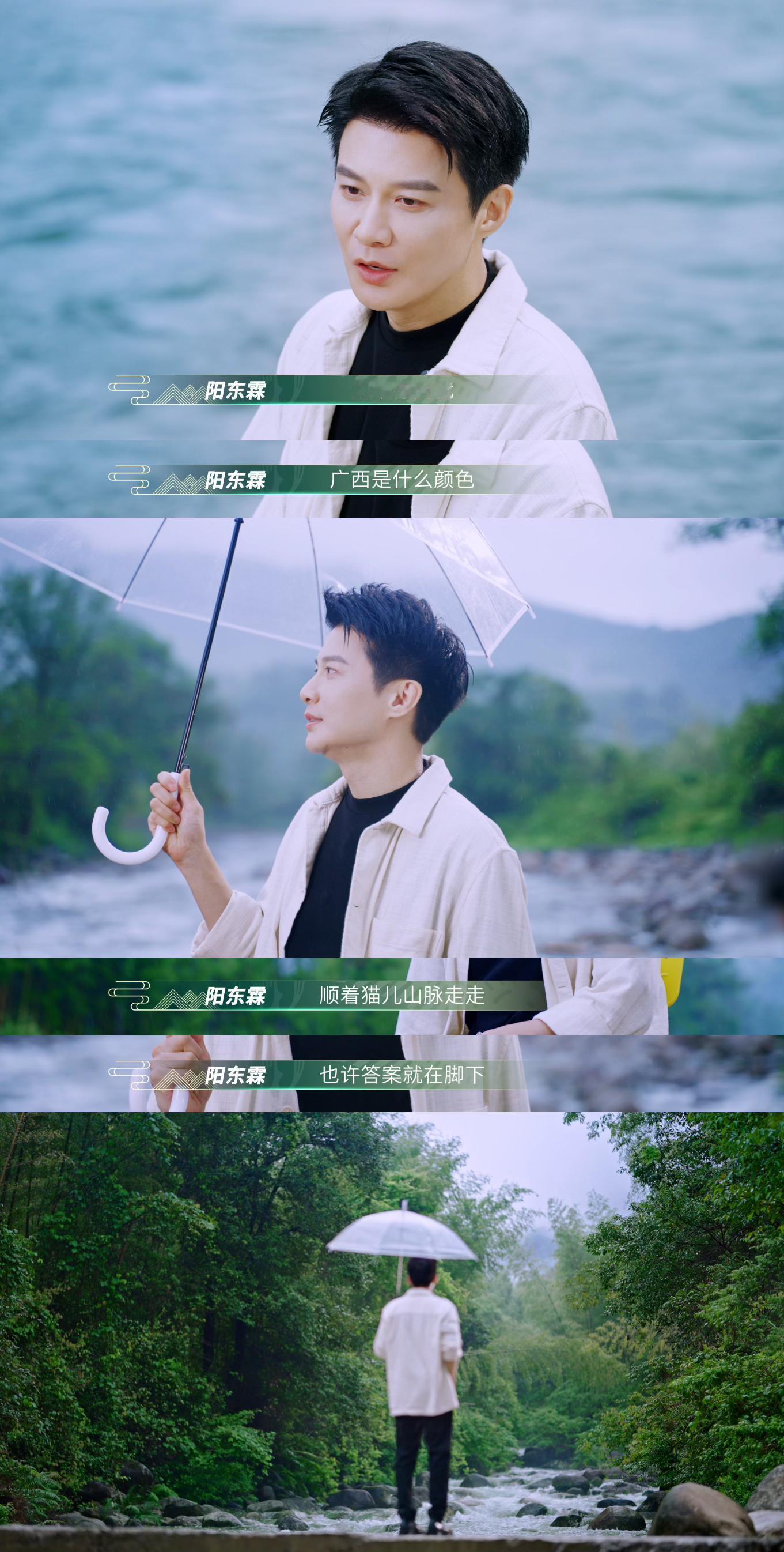 陆仙人将广西山水穿在身上 广西台藏不住了!新节目《万物秀》直接把T台扎进漓江山水当中,陆仙人踩着粼粼波光走来,身上服饰复刻着山水的肌理。薄纱是山峦间缭绕的青烟,青布是漓江碧水。连只此青绿设计师阳东霖都坦言广西是灵感源地,看完满脑子都是想去一趟广西了!