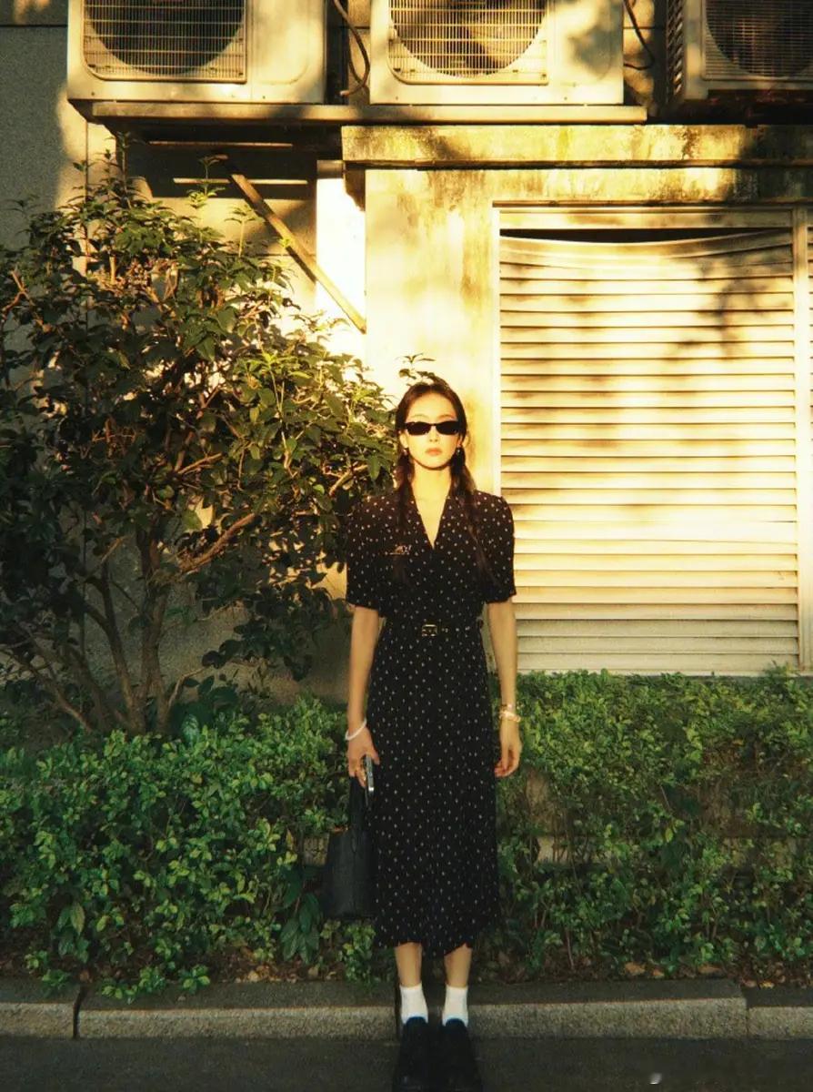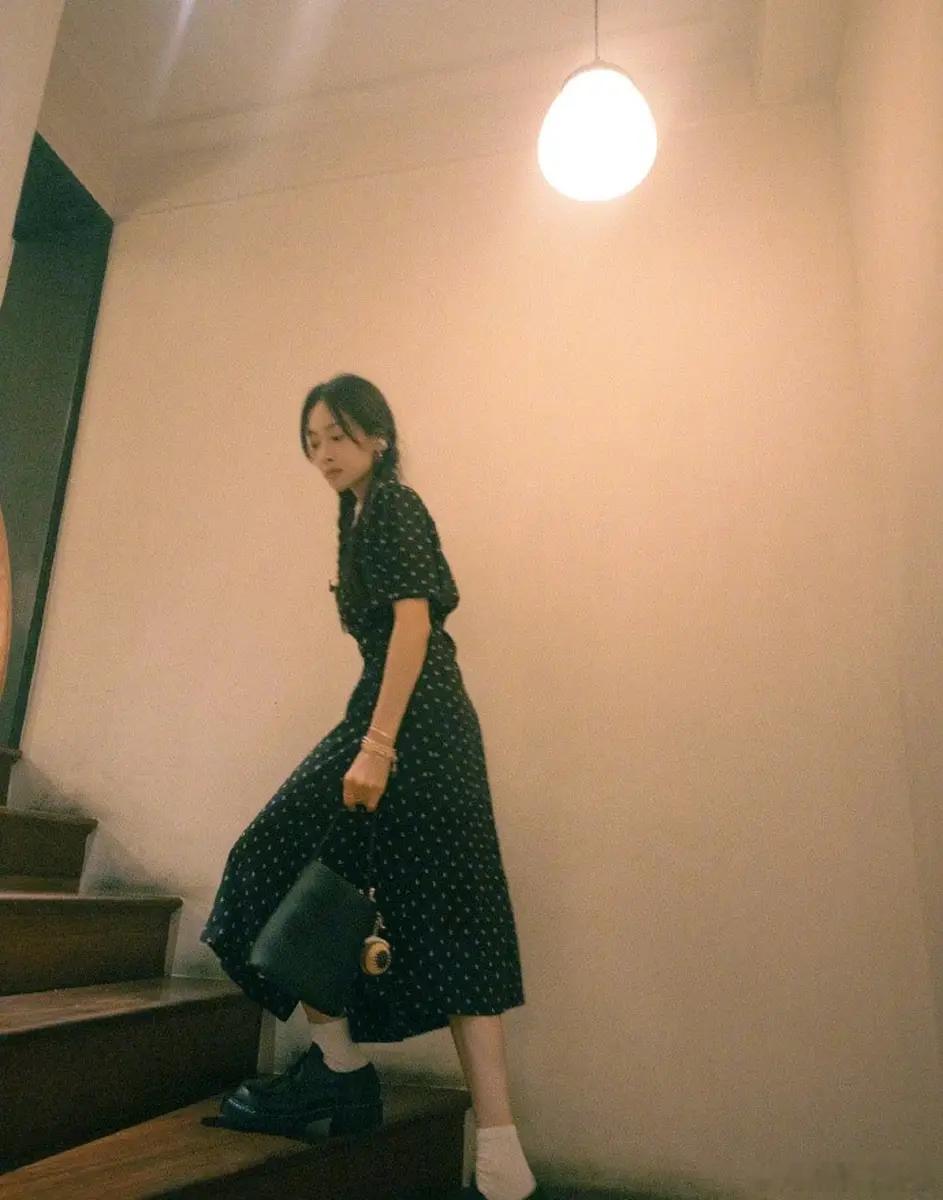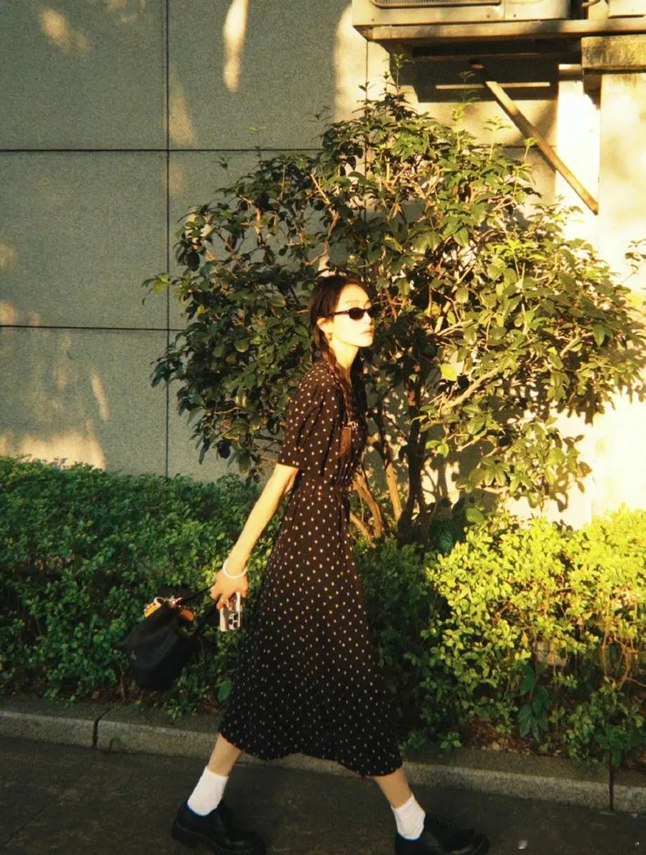 宋茜穿波点碎花裙清纯文艺 站在阳光下自由明媚