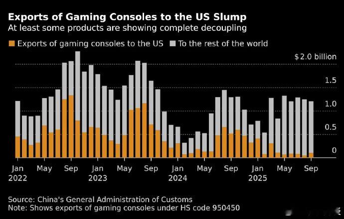 游戏机出口大幅下滑,任天堂和微软等公司选择从越南等地发货,而不是支付更高的关税从中国发货。美国消费者现在似乎正在从其他地方购买电视机,上季度中国对美出口的液晶电视价值下降了73%。
