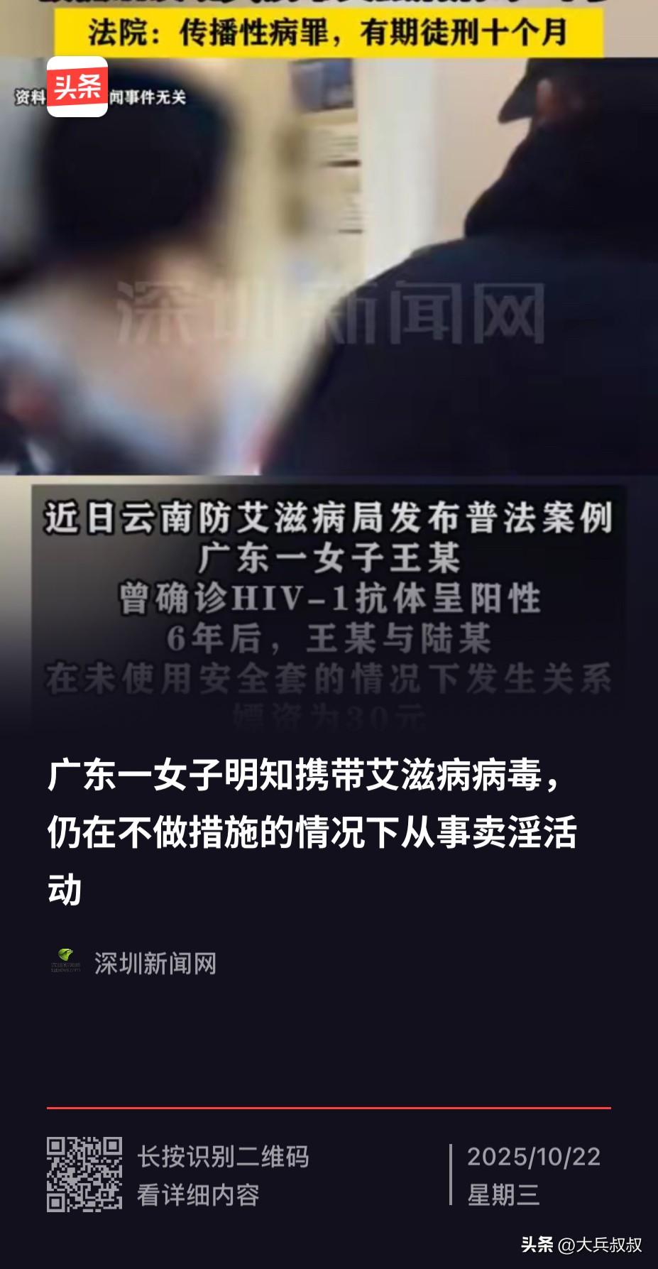 广东,一女子收了一男子30元,与男子发生关系时被警方抓获归案,本以为这只是一起普通的行政案件,结果,女子却被法院判了10个月,而男子更是悔不当初。 据悉,女子王某在6年前就确诊了HIV,可是王某却不当回事,在联系了男子陆某之后,两人达成了30元发生不法交易的行为,于是,在一出租屋里,在未使用安全措施的情况下,两人发生了关系。 结果,两人却被民警巡查发现,本以为这是一起普通的行政案件,可是,因为王某患有HIV,而且还没有采取任何防护措施,所以,王某的行为就不是行政处罚了,而是上升到了刑事处罚,即王某的行为已经构成传播性病罪。 据此,法院判决王某有期徒刑10个月,并处罚金2000元。 事发后,有网友就表示,陆某一旦被感染上,那真的是得不偿失了。还有网友表示,才判刑10个月,也太轻了,最起码10年以上。 为何王某做这种事情,被判刑10个月? 其实,由于王某的行为,客观上导致了疾病传播的可能性,按照刑法第三百六十条规定,明知自己患有梅 毒、淋 病等严重性病卖 淫、嫖 娼的,处五年以下有期徒刑、拘役或者管制,并处罚金。所以,王某被判刑不冤。 陆某虽然是所谓的受害人,但是,陆某毕竟实施了违法行为,按照治安管理处罚法的规定,陆某可面临最高15日行政拘留以及最高5000元罚款的处罚,所以,虽然陆某花了30块钱,但是最终带回来的,却是疾病传播的风险以及行政拘留和罚款的处罚。 有人觉得,王某判的太轻了,其实,王某是没有把疾病传播给陆某,否则确实判刑就重了。 根据相关司法解释的规定,如果王某将疾病传播给了陆某,那么,王某的行为,就属于故意伤害行为了,而且还是重伤害,那么,按照刑法的规定,故意伤害他人,导致重伤的,处三年以上十年以下有期徒刑,所以,如果陆某感染了疾病,等待王某的就是3-10年有期徒刑了。 话说回来,陆某经过这一事件,想必也给他一个警醒,以后不会去做违法的事情了,毕竟,风险实在是太大了,如果一旦被感染了疾病,吃药是其次的,关键是生活质量和生命周期都会大打折扣。 最后,还是要提醒大家,一定要洁身自好。 对此,你对本案有什么看法? —————————— 关注我,带你评析法律热点,关注冷暖人生。 文章原创,抄袭必究