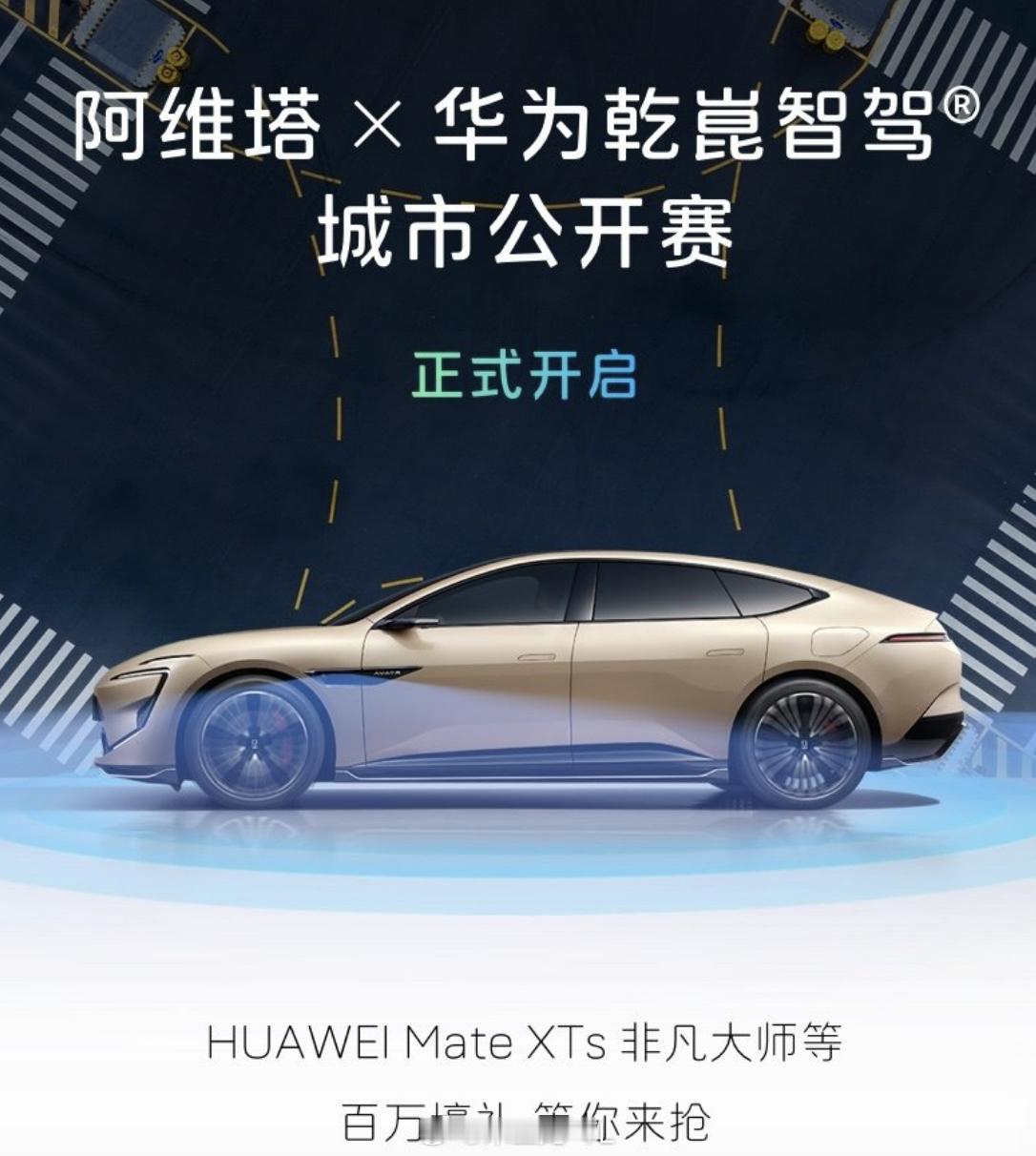 阿维和华为搞了个智驾城市公开赛阿维塔华为乾崑城市公开赛,报名时间到 10.28,比赛就是开着车日常用 ADS 4 就行,⾥程 TOP5 获「HUAWEI Mate XTs ⾮凡⼤师」,价值19999 元 / 台,这是要让阿维塔车主卷起来