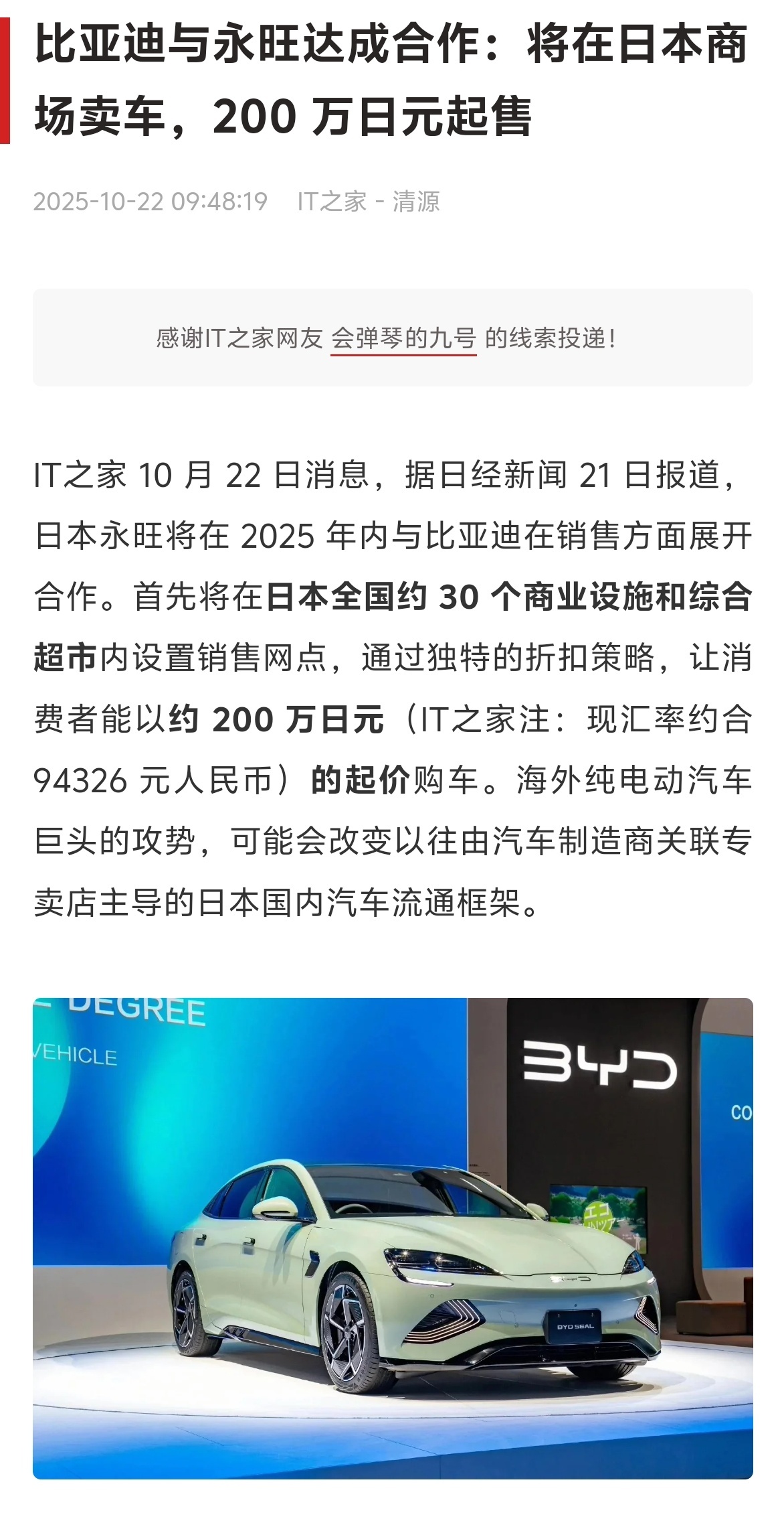 但在小日子过得还不错的日本,商场卖车还是比较新鲜的。这波比亚迪和永旺合作,把汽车店带到日本商场里,一定能让更多日本人认识和了解到比亚迪~