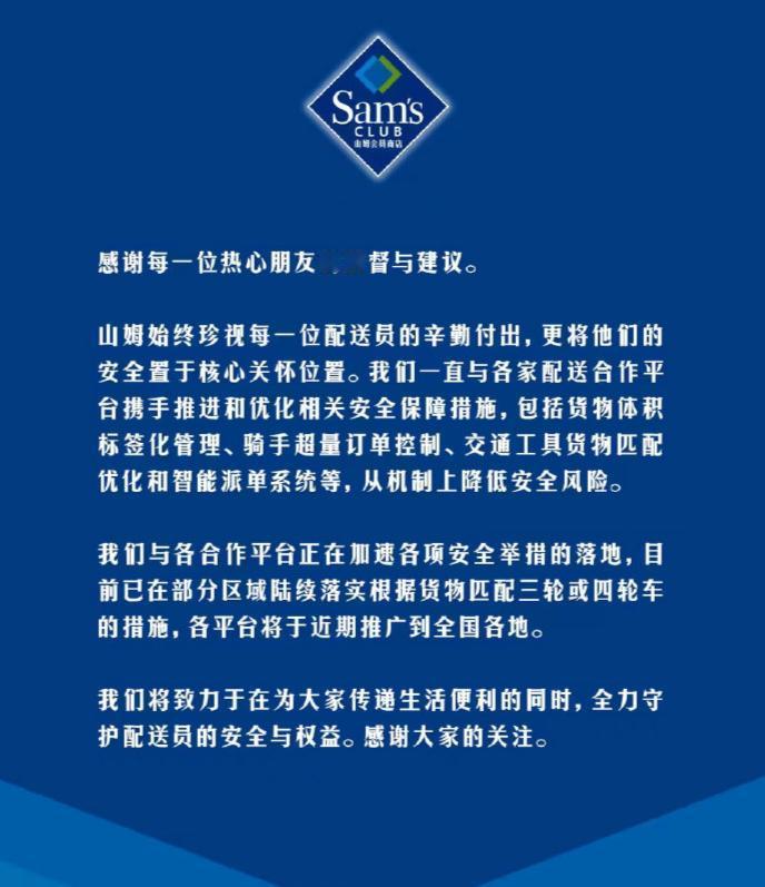 今晚打开山姆 App 的注意了!配送小哥电动车挂满包裹摇摇晃晃上路,背后真相太吓人!22 日深夜突发公告,山姆承认存在配送安全隐患!网友实拍触目惊心:电动车前后挂满大包装,车把被压得七歪八扭!家庭装 12 斤车厘子箱 + 5 升橄榄油箱叠罗汉,这哪是配送?简直是玩命! 重点划好了: 1️⃣ 天津武汉长沙已改用三轮车送大件 2️⃣ 电动车载货超 1.5 米直接违法! 3️⃣ 网友怒斥:山姆你家商品重达 15 斤,让电动车送良心不痛吗? 更狠的来了!国家明文规定电动车载货高度不得超 1.5 米,宽度不能超车把 15 厘米。看看这些实拍图,包裹堆得比人还高!交警朋友透露:这种严重超载,抓到就是 200 元罚款扣车! 建议有条件的配送经销商改用 ,生意好,人更重要·! 百万网友连夜喊话:山姆你学学盒马!人家大件都用四轮车!配送员命也是命!最后提醒:遇到超载配送请立即投诉!你的每一通电话都可能挽救一条生命! 山姆配送安全升级 骑手权益保护 五菱星光730
