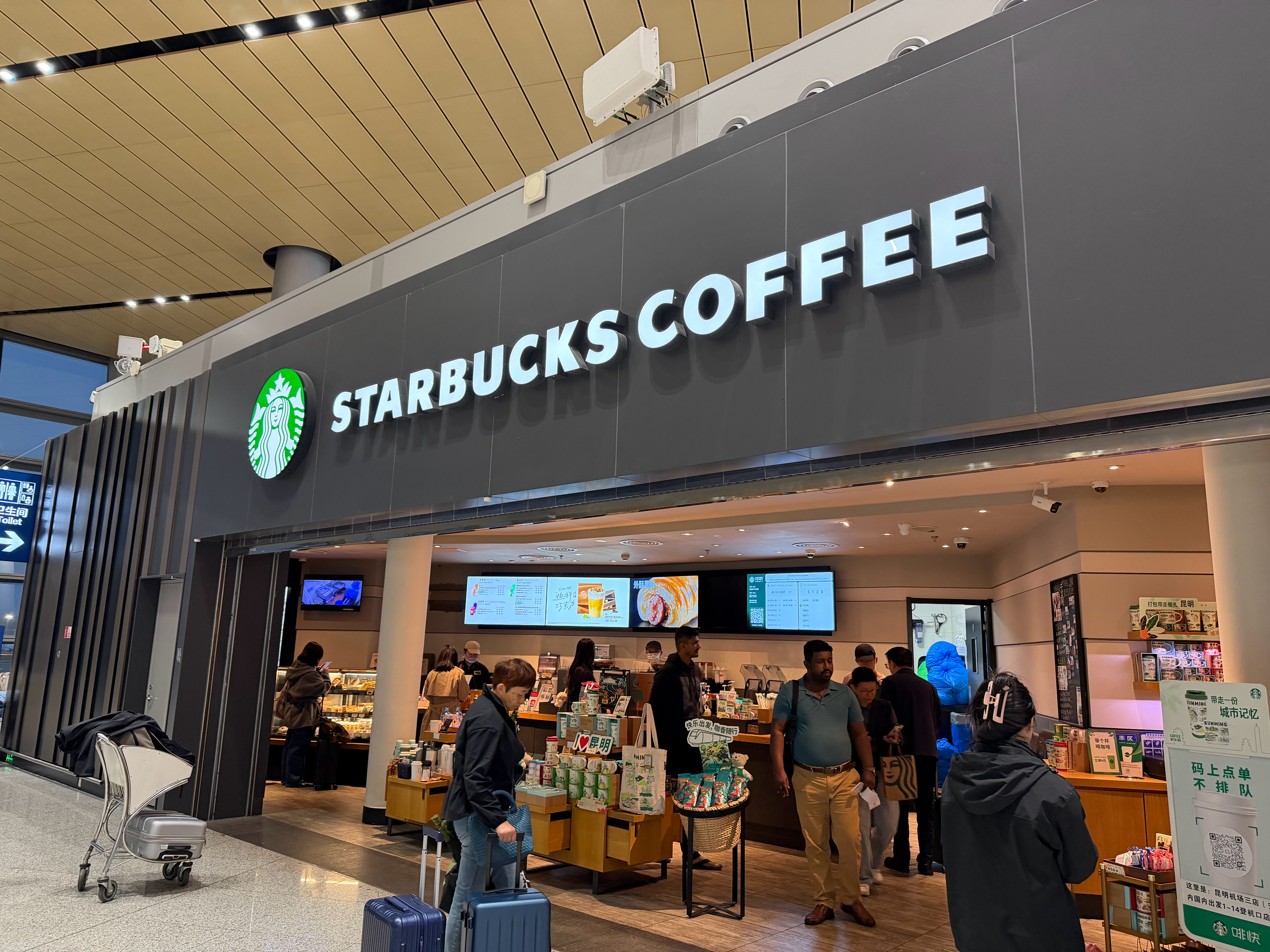 早啊列位,昆明机场易安检7点才开,走人工了,好在进来就是星巴克,来杯暖暖身子,今