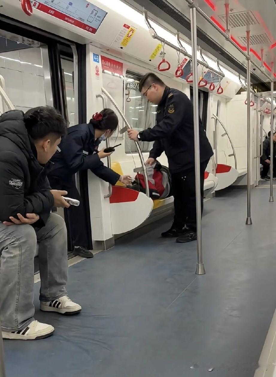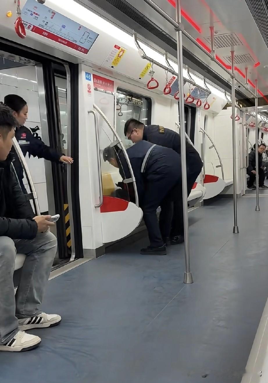 地铁里睡觉,直接被工作人员抬走! 今早坐地铁撞见离谱一幕:一哥们儿在座位上睡
