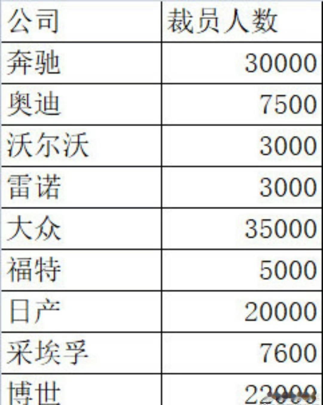 我看到一种说法是裁员率是随着全球汽车需求量地减小而扩大,但是一看网传的裁员名单,感觉中国汽车行业可以再努努劲,冲一冲全球市场了