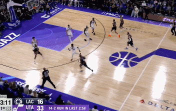 快船瞬间被爵士打停的原因,1分钟竟然出现4次“失误” 北京时间10月23日,快船与爵士的比赛进行至首节3分钟处,球队更换第二阵容后瞬间被打停,原因很简单,短短一分钟时间里,球队连续出现4次“失误”! 图一:科林斯发边线球给洛佩斯,直接被弩尔基奇抢断扣篮。 图二:邓恩想要给洛佩斯传球,再次被弩尔基奇抢断,随后防守时,保罗和大洛沟通不明确,又被克莱顿打成2+1,一个回合里出现两次失误。 图三:保罗运球至前场,想与邓恩手递手配合再次被打断打成反击扣篮,球队16-35已经落后19分,卢指导不得不叫暂停。