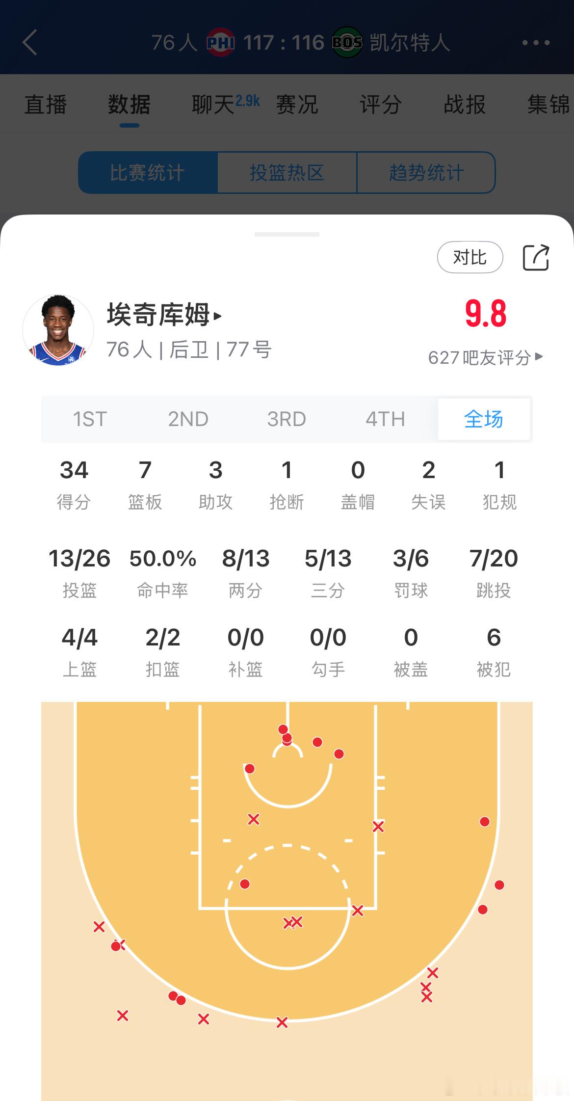 炸裂!76人探花VJ-埃奇库姆首秀砍下34分7板3助