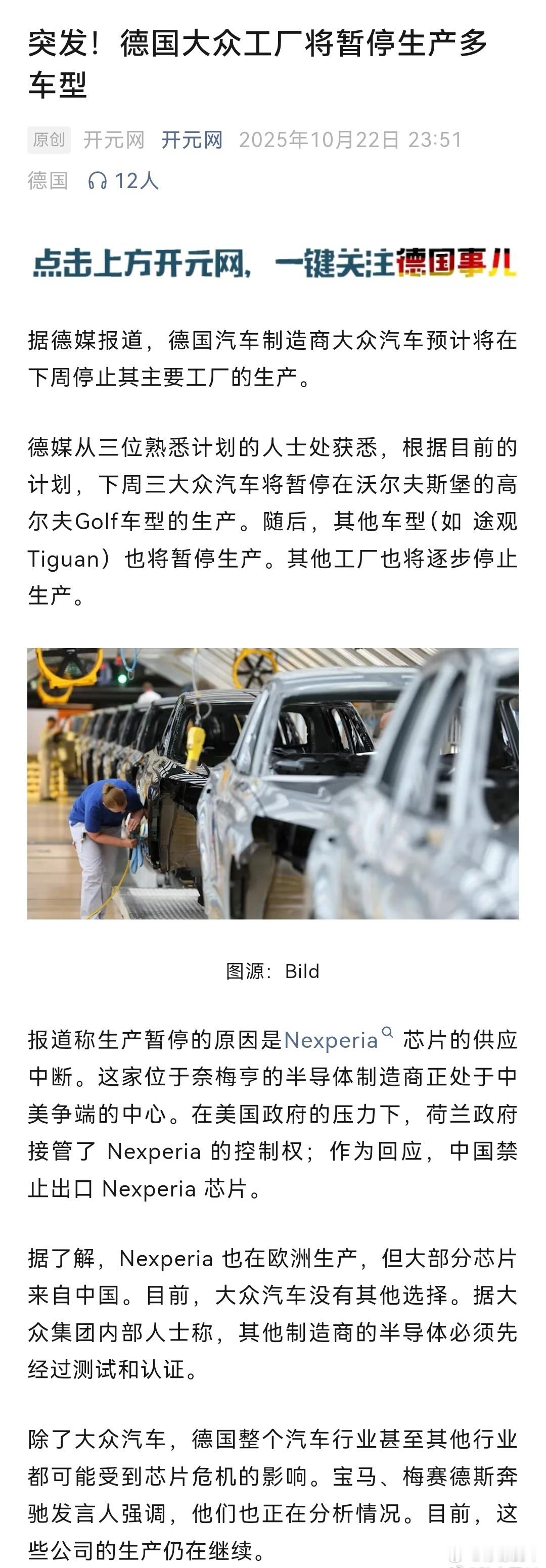 高尔夫和途观的车型,大众将不会在主要工厂进行生产了,原因是芯片断供且没有更好的选择,不知道大众会有什么应对策略[思考]