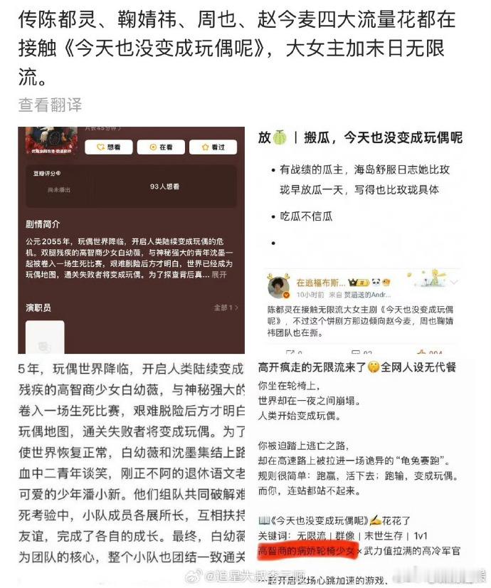 四大流量花接触今天也没变成玩偶呢鞠婧祎陈都灵赵今麦周也今天也没变成玩偶呢内娱