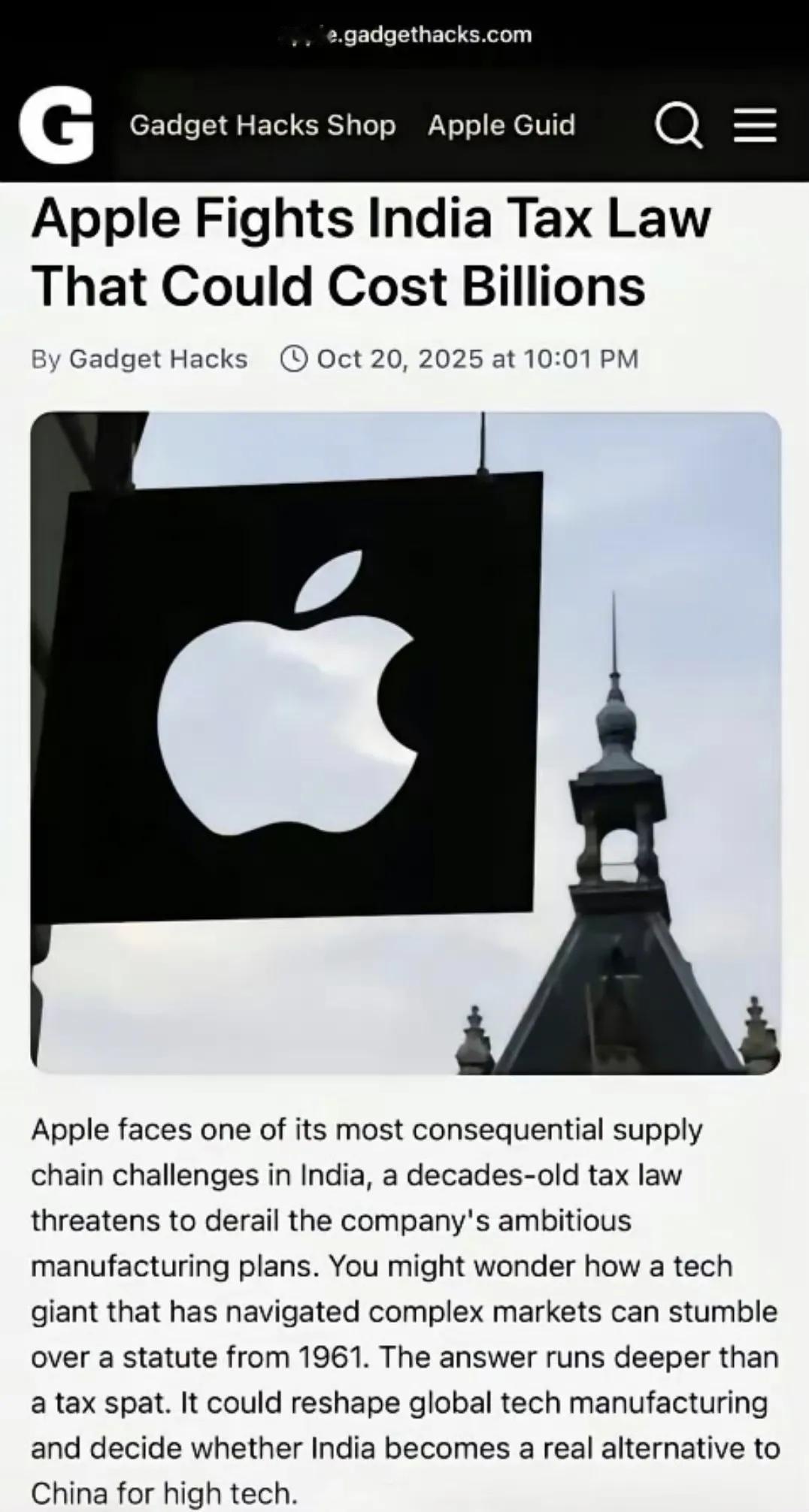 ☔印度又要割韭菜了:苹果8条产线从中国搬到印度后,印度拿出1961年法律,