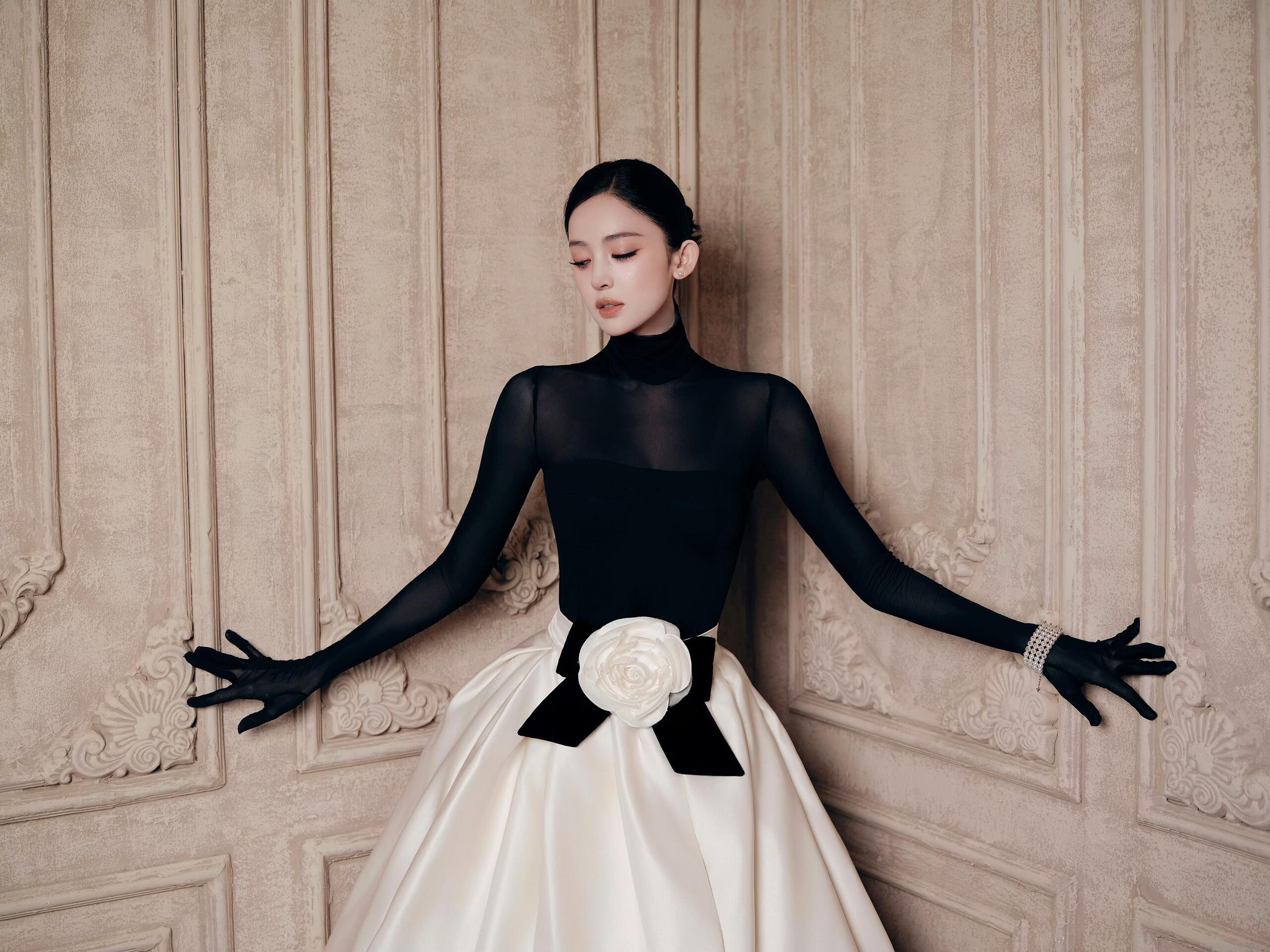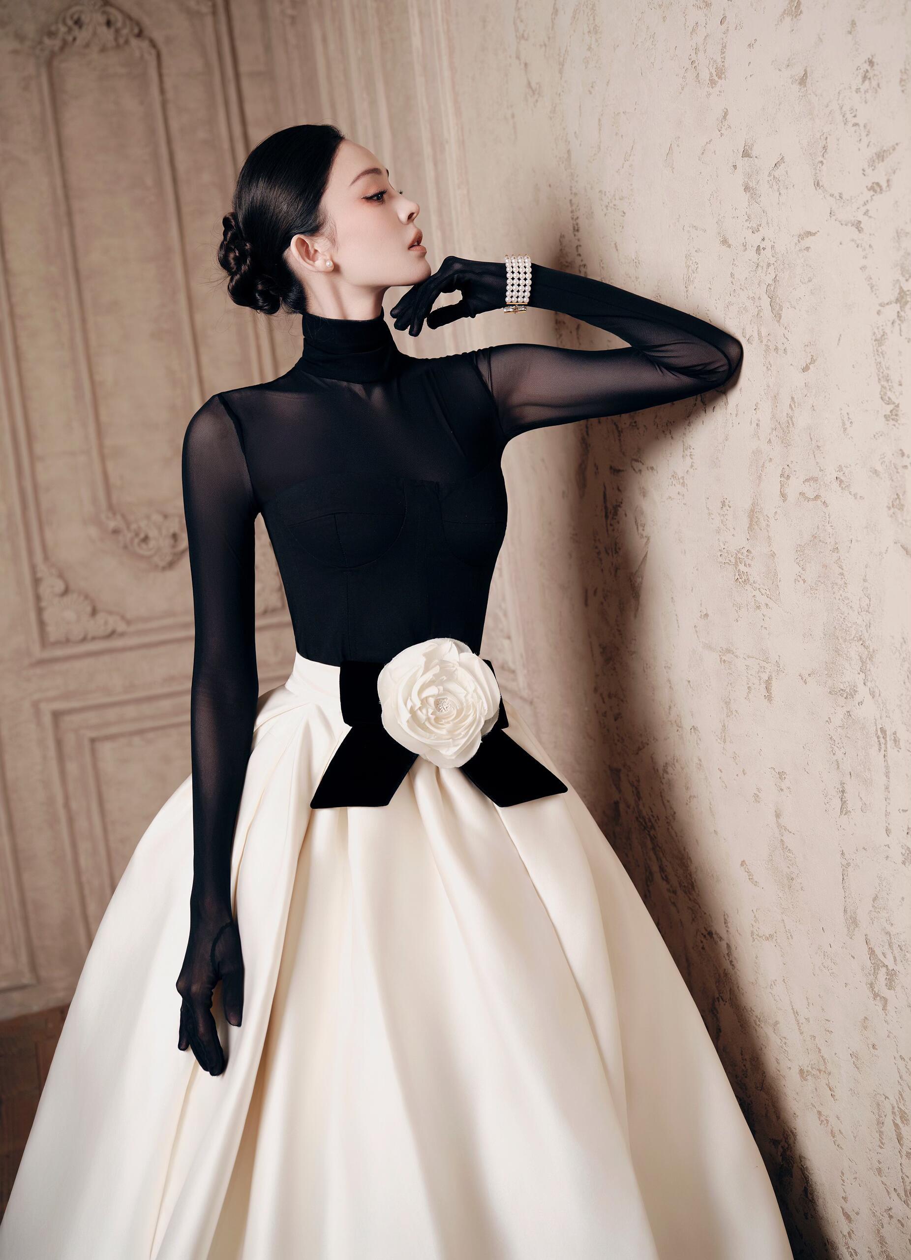 赫本风韵与时尚灵感相融,经典黑白中尽显优雅俏皮,珍珠缀腕更添温润华彩。VOGUE盛典