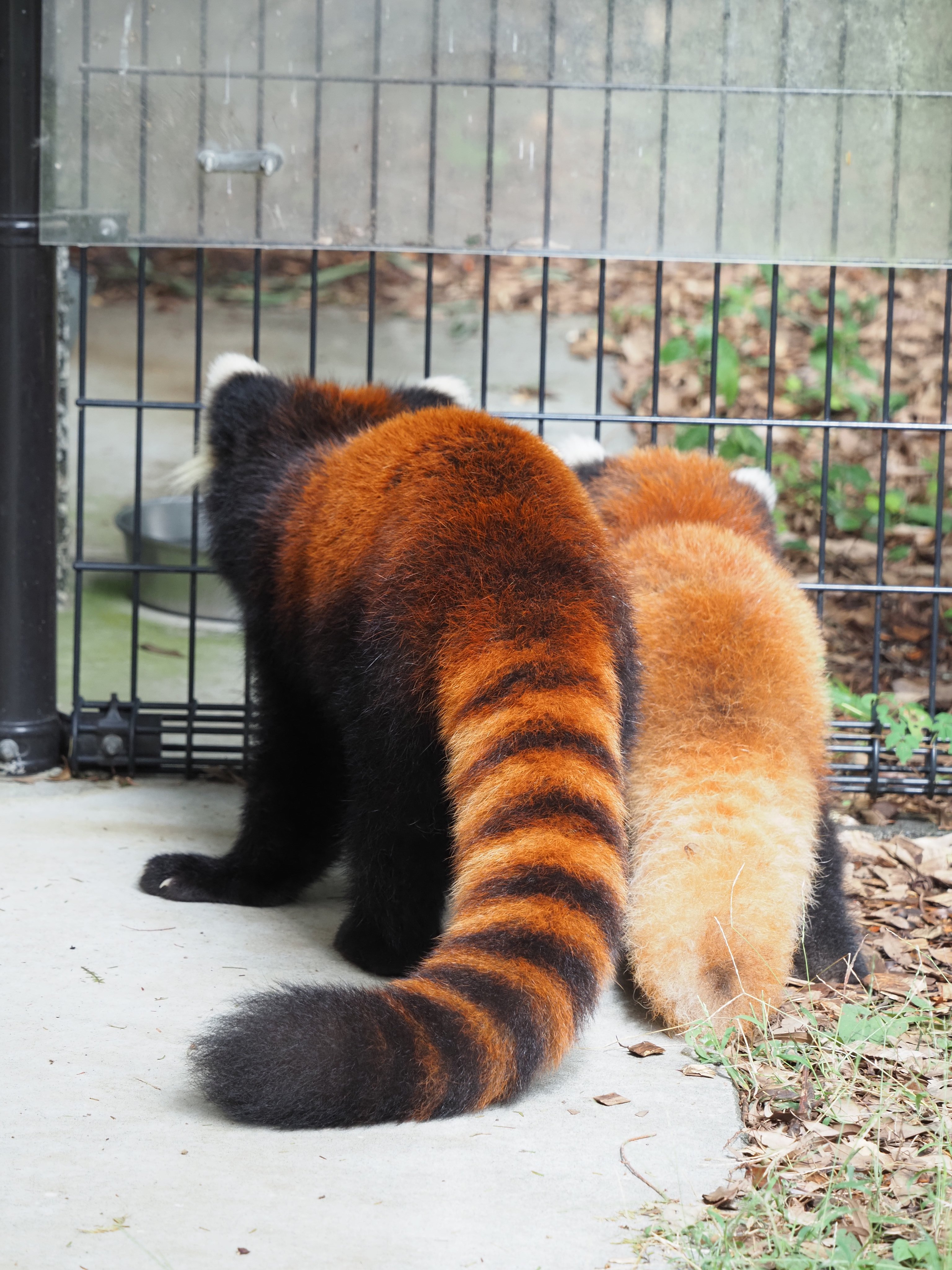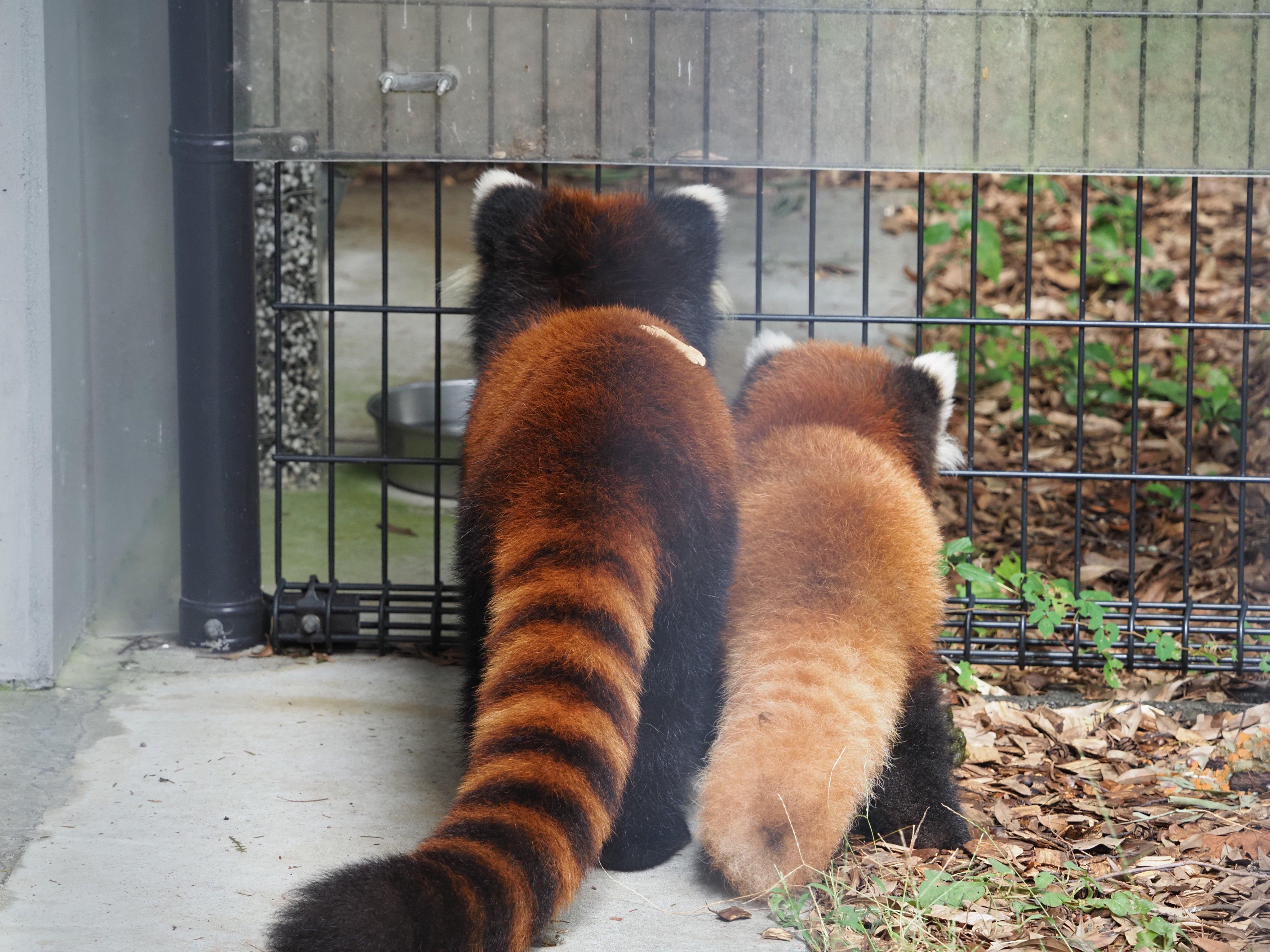 小熊猫难得的大小能亲子同框~~两只的尾巴都是各有特色的好看!!【推:kyon_