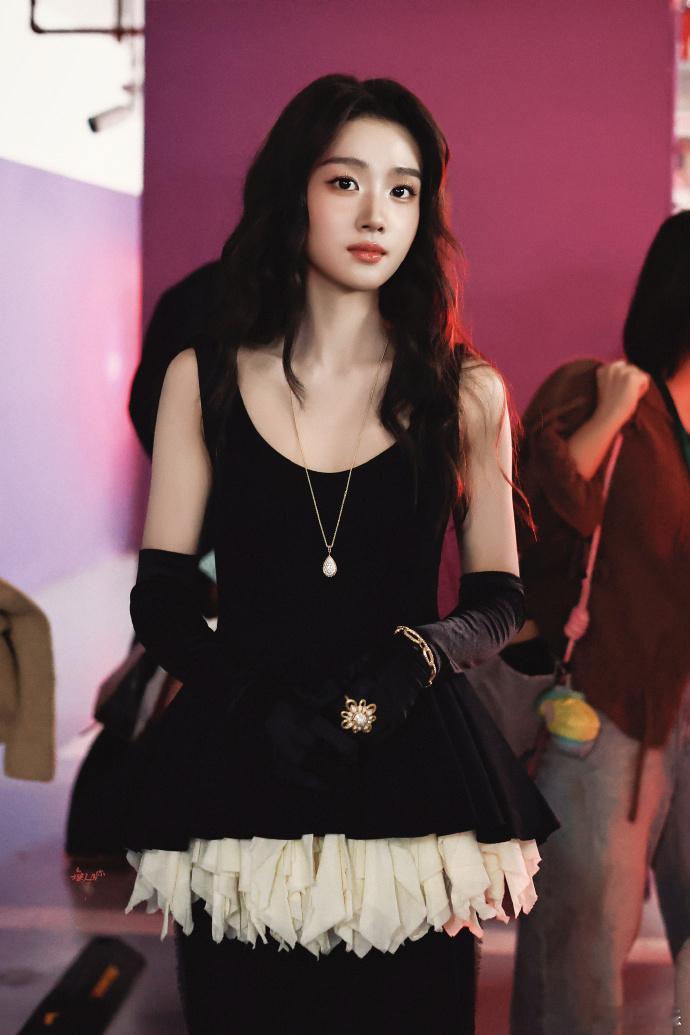 卢昱晓优雅小黑裙,卢昱晓vogue盛典黑天鹅造型出图,谁来懂一下这个晓晓的美貌啊,期待住待会和你的盛典的见面啦~