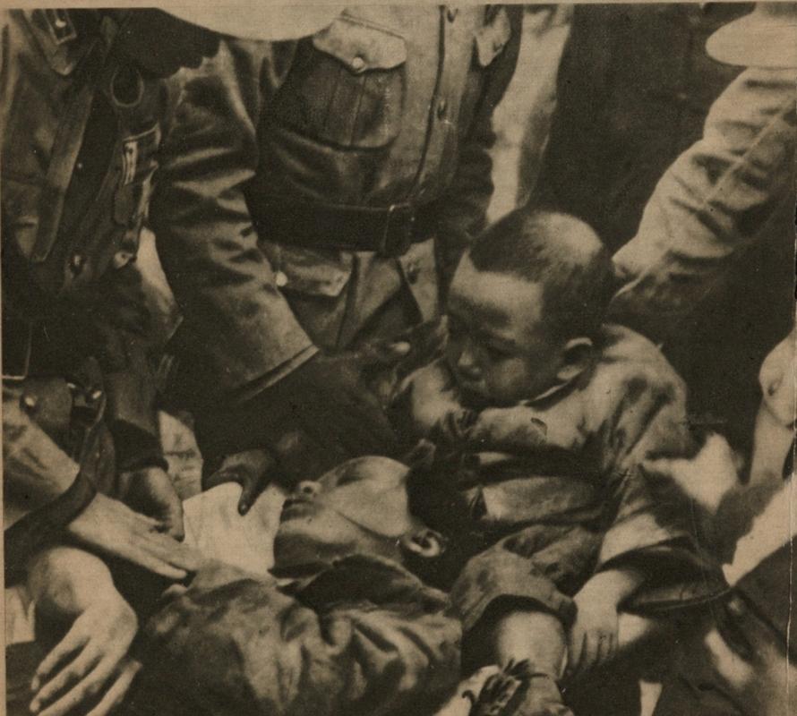 日军轰炸广州后的一幕,母亲已经被炸死,旁边是受伤的幼子。1937年8月31日首次轰炸广州,至1938年10月广州沦陷,持续14个月。 最多的一天出动了93架飞机,累计投弹超2600枚,炸死1400余人、炸伤近3000人,毁房超2000间。
