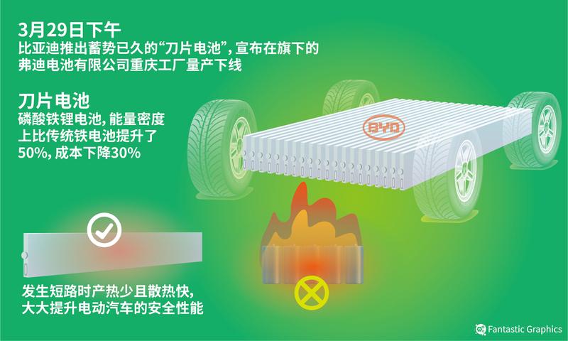 比亚迪的刀片电池很有料。它本质是磷酸铁锂电池,只是把单个电芯“扁平化”,长宽高为