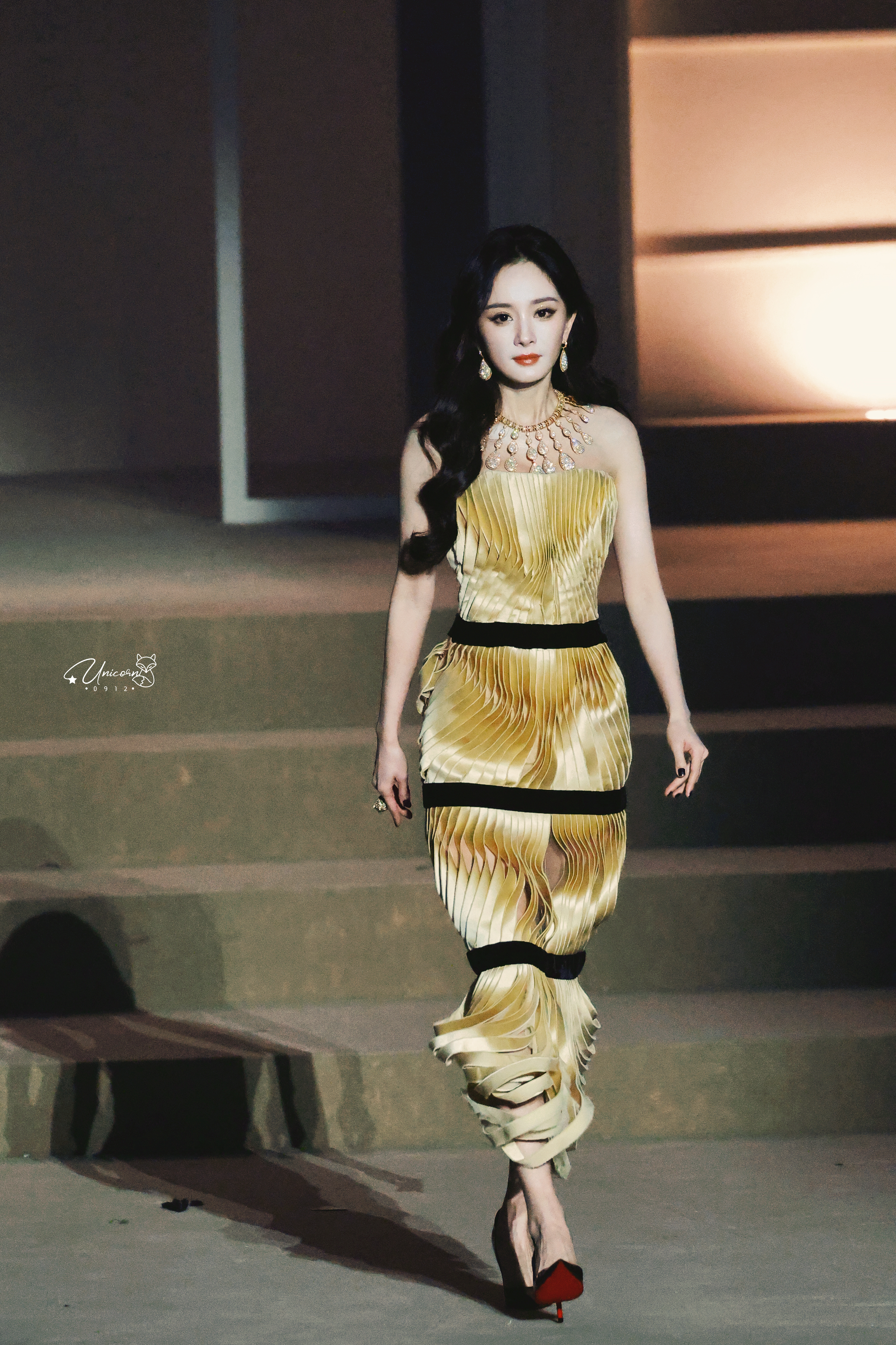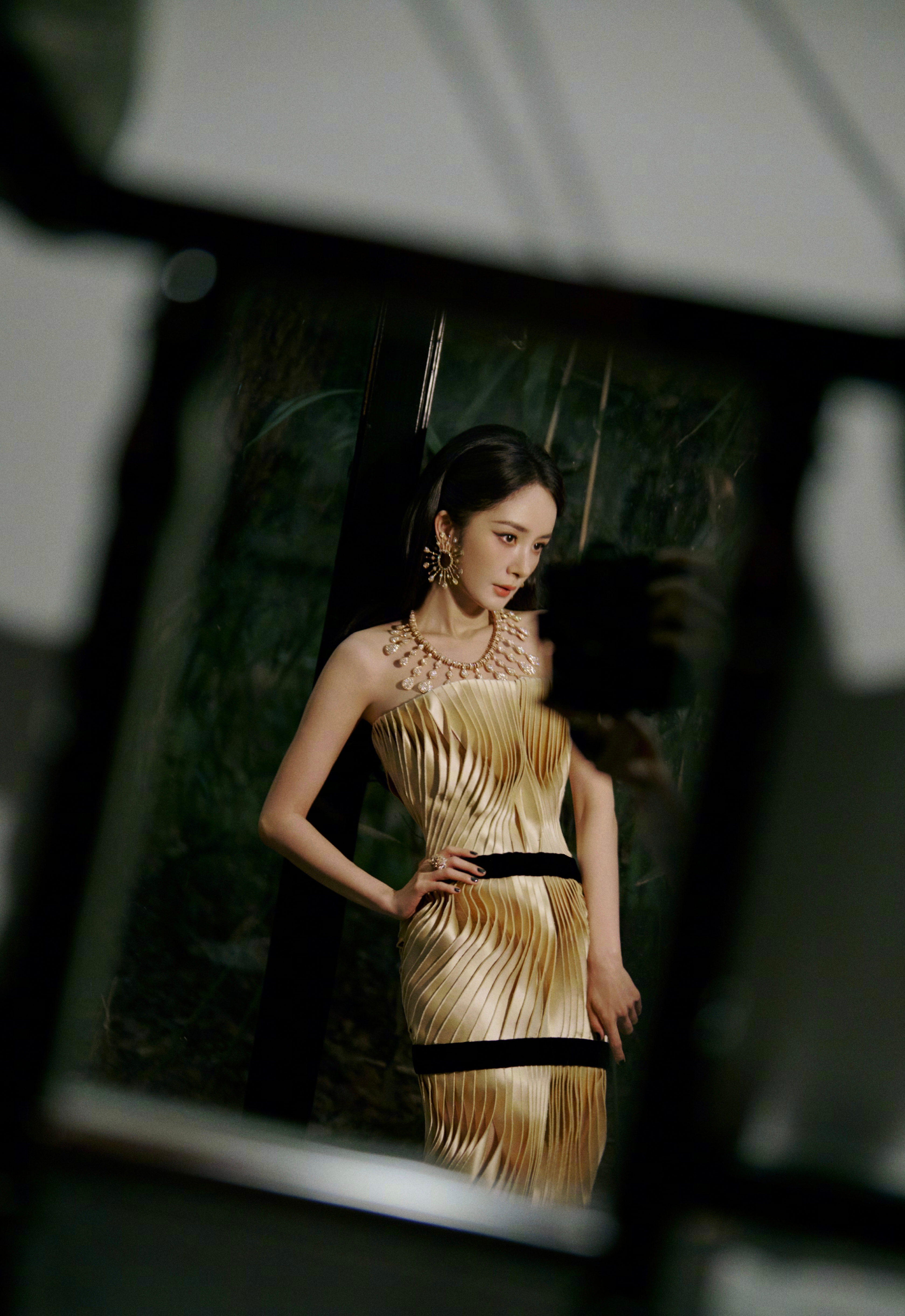 杨幂鎏金裙裾曳着旧梦流光,她凭栏处,将复古优雅与摩登锋芒,揉进一帧帧明暗交织的