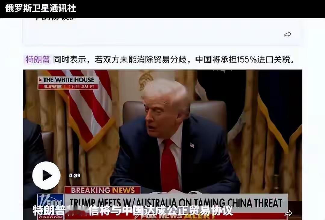 要么签协议,要么加税155%,特朗普要中国二选一,只给一周考虑近期,中美贸易关系再度呈现出剑拔弩张的紧张态势。 这一局势让特朗普坐立难安,当地时间10月20日,在与澳大利亚总理会晤的场合,他公然向中国抛出了一个非此即彼的选项:要么在APEC峰会期间与美国达成贸易协议,否则便要面临高达155%的关税。 说起来,特朗普这次提出的“二选一”,并不是凭空冒出来的。熟悉中美贸易谈判的人都知道,从他第一次担任美国总统期间,就频繁用关税作为施压手段,2018年开始的中美贸易战里,他曾先后对中国数千亿美元商品加征关税,从最初的10%逐步提到25%。这次直接喊出155%,幅度远超以往,连美国国内的企业都坐不住了。 美国零售商协会在特朗普表态后的第二天就发了声明,里面明明白白写着“155%的关税会让美国消费者买单”。要知道,美国市面上近三成的小家电、五成以上的纺织服装都来自中国,一旦加税,这些商品的价格会直接涨上去。就像去年圣诞季,因为关税上调,美国超市里的中国产圣诞树装饰品价格涨了30%,不少消费者只能减少采购。这次要是真加到155%,后果更不敢想——小到手机充电器,大到家具,都会变成“奢侈品”,普通家庭的生活成本会直线上升。 更有意思的是,特朗普提的“APEC峰会期间达成协议”,时间点本身就很紧张。APEC峰会通常会期只有两三天,参会的都是各国领导人,主要讨论宏观合作方向,而贸易协议涉及关税减免、市场准入、知识产权保护等上百个细节,之前中美谈判团队面对面谈了十几轮,每轮都要花上一周甚至更久,现在只给一周考虑,还要在峰会期间敲定,这现实吗? 不少分析人士都看出来了,特朗普这么急,背后藏着国内的政治考量。他目前正处于竞选关键期,之前多次在竞选集会上拿“对华贸易”说事,想靠“强硬态度”争取选民支持。可他没算明白,对华加税不仅会坑了美国消费者,还会砸了美国农民的饭碗。中国是美国大豆、玉米的重要买家,2023年美国向中国出口了近300亿美元的农产品,要是因为加税引发反制,中国减少采购,美国农场主的粮食就会积压,价格暴跌。去年美国中西部就有不少大豆种植户因为销量下滑,不得不申请政府补贴,现在要是再出这事,这些农户恐怕不会再支持他。 中方的态度也很明确,外交部发言人在例行记者会上直接点明:“贸易谈判不是菜市场砍价,更不能搞极限施压。中国从不害怕威胁,任何单边加税措施,最终只会反噬自身。”这话不是空话,之前特朗普加征25%关税时,中国就对美国的汽车、农产品等商品采取了对等反制,结果美国汽车在华销量下滑18%,不少车企只能把生产线转移到其他国家,反而流失了中国市场。 大家可能会问,特朗普难道看不到这些后果吗?其实他未必看不到,只是现在竞选压力大,想靠“对华强硬”制造话题,转移国内对经济问题的关注。可贸易不是零和游戏,你加税我反制,最后只会让全球供应链混乱——中国的工厂可能因为订单减少裁员,美国的商店可能因为缺货关门,连其他国家的企业都会被波及。就像之前东南亚的电子厂,因为中美关税战,零件供应断了链,不得不停工半个月。 说到底,中美作为全球前两大经济体,贸易合作应该是互利共赢的,靠威胁、施压根本解决不了问题。155%的关税听起来吓人,可真要实施,受伤的不仅是中美两国,还有全球的消费者和企业。希望特朗普能清醒一点,别把政治算计凌驾于经济规律之上,回到平等协商的轨道上来,这才是对双方都有利的选择。 各位读者你们怎么看?欢迎在评论区讨论。