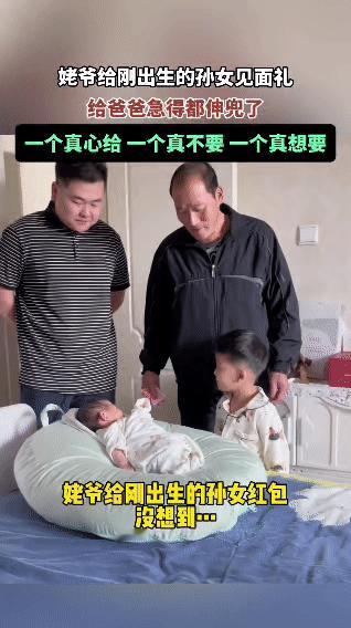 姥爷给孙女红包遭“拦截”,爸爸急得伸兜又缩手 姥爷满心欢喜给刚出生的孙女送见面红包,本是温馨时刻,却被“小管家”似的大孙子一个“不要不要”给挡了回去。旁边的爸爸看着红包,急得手都伸进口袋又默默缩回,上演了一出“一个真心给,一个真不要,一个真着急”的搞笑家庭小剧场。 如果你们的长辈给晚辈红包,你们会收吗?姥爷宠溺 搞笑 家庭