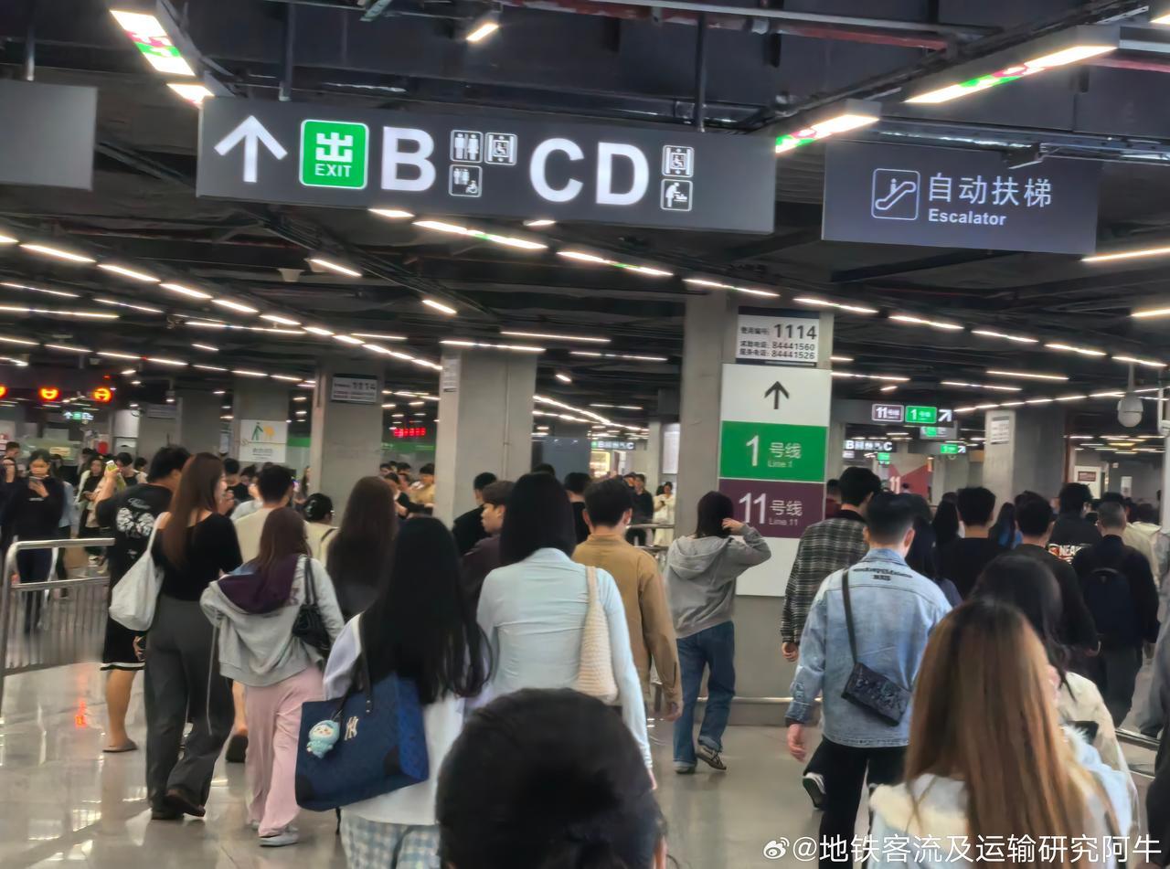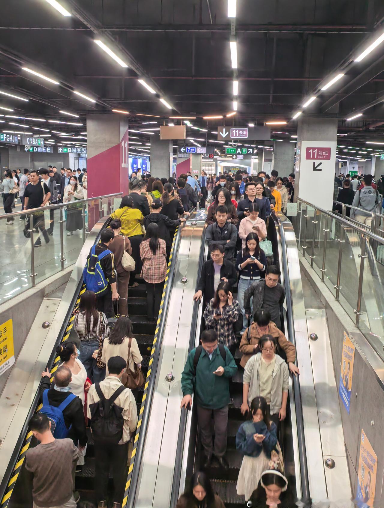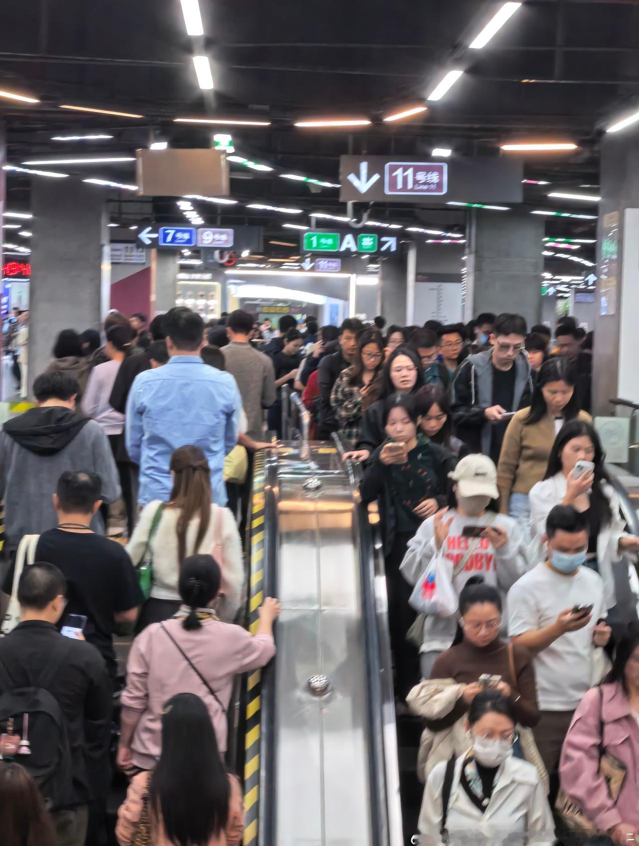 网友:2025-10-23(周四,阴)18:50,深圳地铁车公庙站厅客流情况。