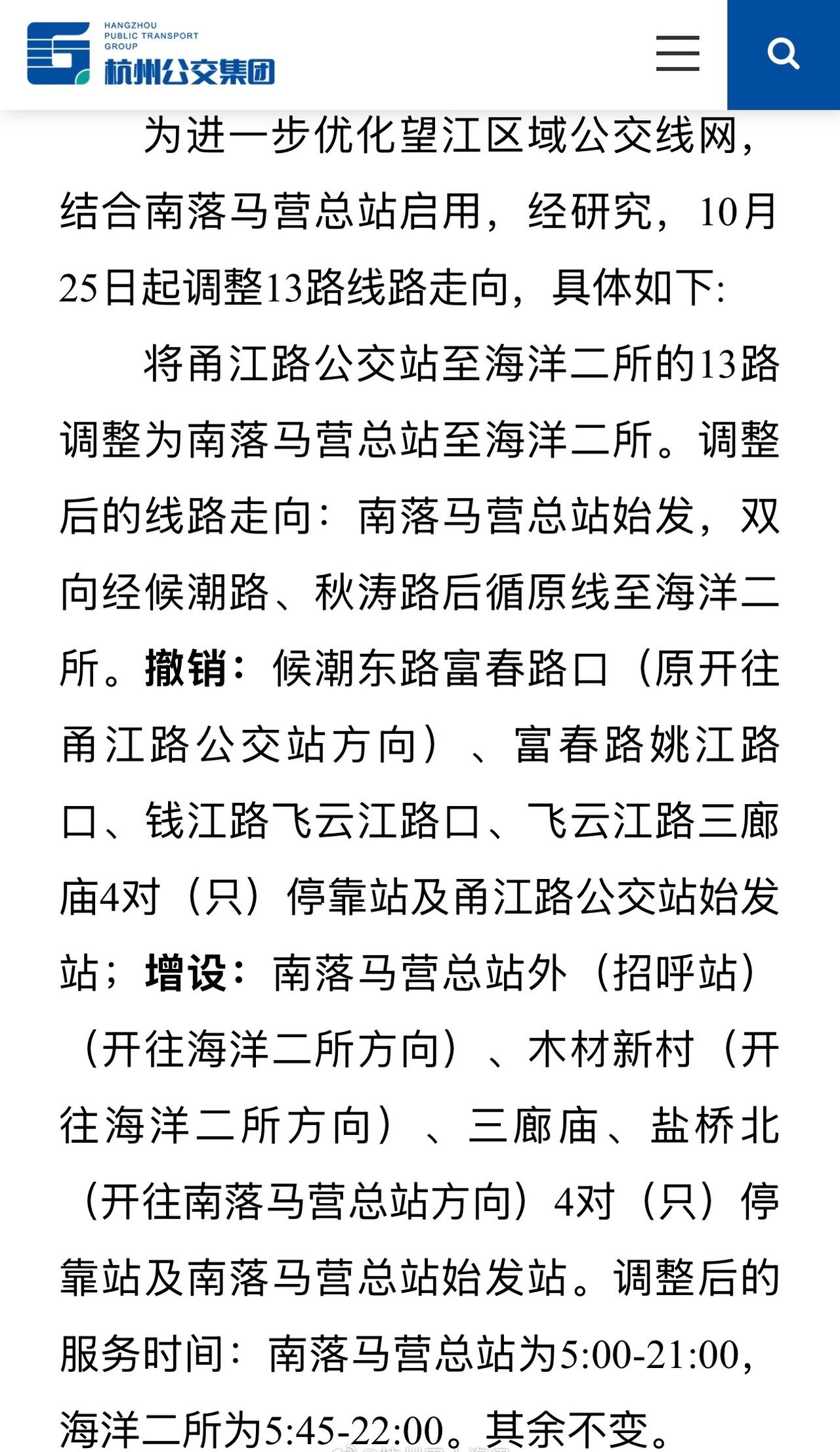 【轨道交通】 绍兴 仿真地铁驾驶舱来咯与杭州地铁同处一张线网的绍兴地铁1号线(支线)在今年6月30日全线开通运营后,该线的北端终点站——会展中心站也同步打造了一个集趣味体验与专业培训于一体的沉浸式安全教育空间。该体验区不仅设置仿真地铁模拟驾驶体验舱,还设有安检科普教育区以及火警模拟处置体验区,旨在为青少年提供地铁相关知识科普教育,并提升市民乘客的安全防范意识与应急处理能力。目前,该体验区已成为绍兴亲子家庭和年轻群体的热门互动平台,甚至部分杭州家长也会在周末假期慕名带娃前来打卡哦~ 另据杭州公交集团官方信息,杭州公交13路将于10.25(本周六)起由甬江路公交站调整至新建成的南落马营总站始发。南落马营总站就是前期公示中新建的“候潮路公交总站”,根据早前公示计划,该临时首末站后续可能还将迁入婺江路银鼓路口现有部分始发线路~
