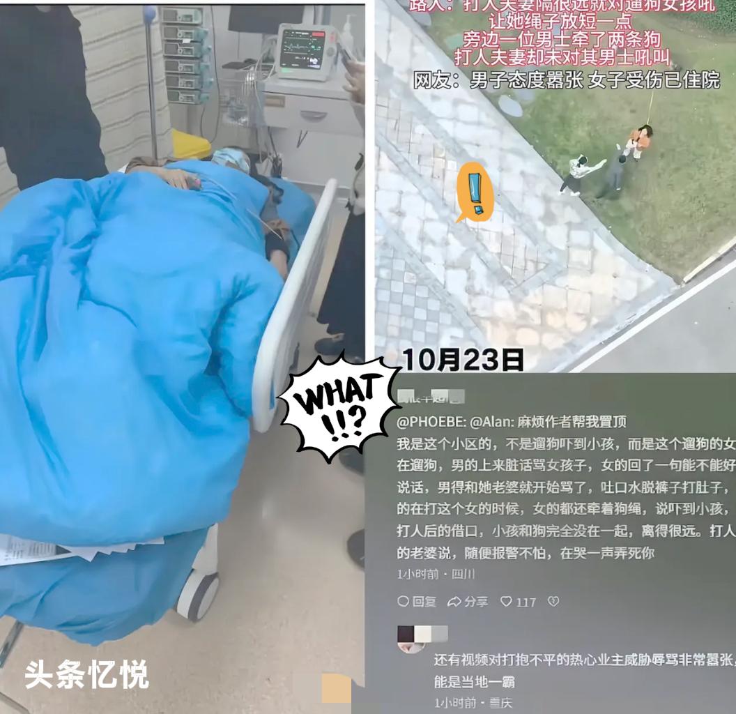 重庆遛狗女子被打后续来了! 不是因为狗没栓绳子, 也不是因为狗吓到孩子了,而是因为 狗绳稍微长了点影响那两口子走路,男的上来就骂脏话,女子回一句,就被连追带打,踹肚子、脱裤子、吐口水,啥过分事儿都干了,他老婆还嚣张放话不怕报警! 这邻里之间,无冤无仇的,下手却这么狠,一看平时就不是啥善茬。现在有些人戾气太重,一点小事就大打出手,真是让人害怕。 我觉得对这种嚣张施暴者,必须严惩,得让他们知道,暴力不是解决问题的办法,法律才是底线。你们觉得该怎么严惩他们,才能起到警示作用呢?快来评论区说说你的看法!