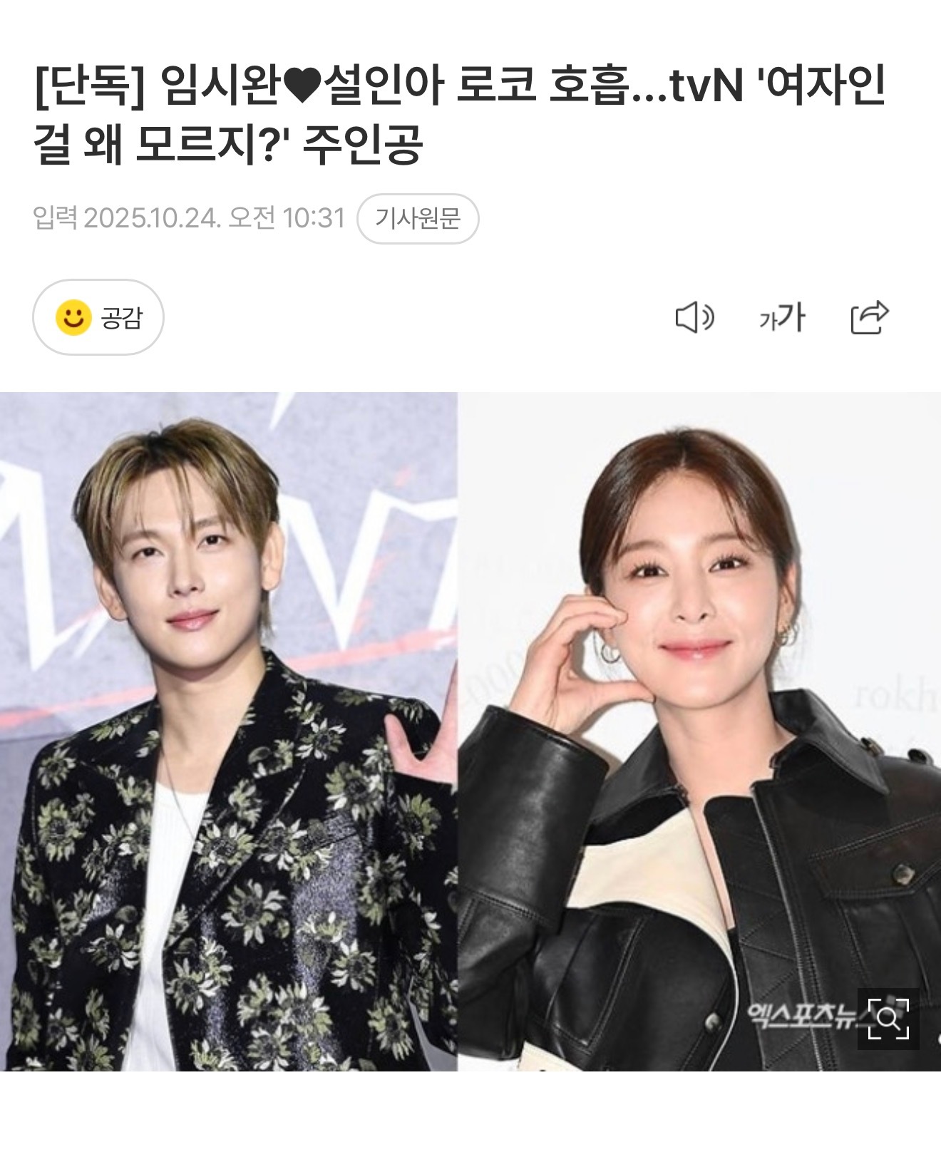 任时完x薛仁雅有望合作tvN浪漫喜剧为什么不知道是女人女扮男装漫改剧!我可太想