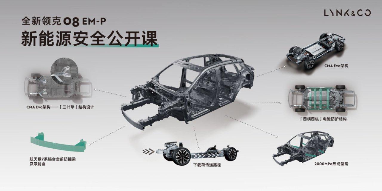 【搭载被动与主动安全配置,全新领克08 EM-P白车身入列清华实验室】近日,全新领克08 EM-P的白车身近日被清华大学智能绿色车辆与交通全国重点实验室汽车碰撞试验室接收,成为该实验室开展安全技术研究、碰撞仿真建模及新材料应用实验的关键教具。作为基于CMA Evo架构打造的家庭豪华智混SUV,该车被动安全体系以白车身为核心载体。其采用最高2000MPa热成型钢,一体式热成型硼钢门环将A、B柱与门槛连成闭环结构,四门防撞梁采用双峰断面设计,配合四横四纵专利底盘框架,可在碰撞时分散冲击力,保护座舱生存空间并防护电池包。主动安全方面,新车全系标配激光雷达与700TOPS算力的Thor芯片,为千里浩瀚H7辅助驾驶方案提供支撑,支持全国99.99%道路的无图城市 NOA,后续可实现D2D车位到车位领航辅助。其具备最高130km/h的AEB前向碰撞减缓功能及G-AES通用障碍物连续自动避让功能,能主动规避高速场景风险。【来自懂车帝车友圈】