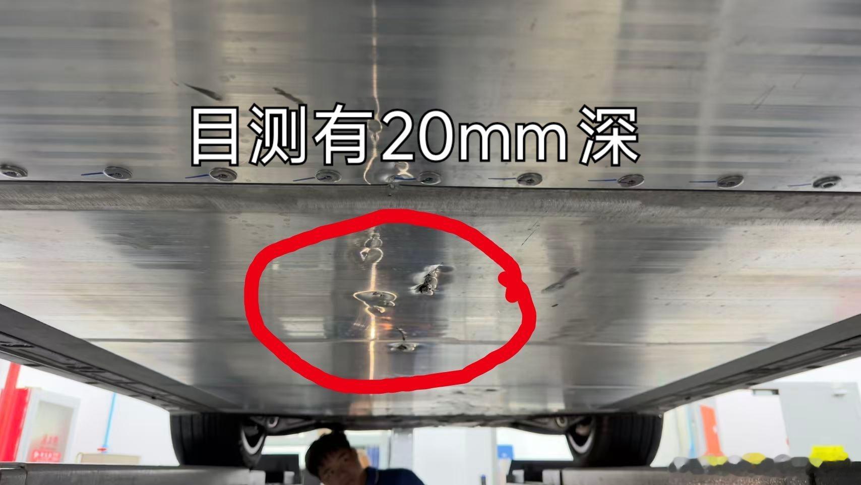 从图片1可以看出来,【电池经历了严重磕碰】,目测有20mm深。