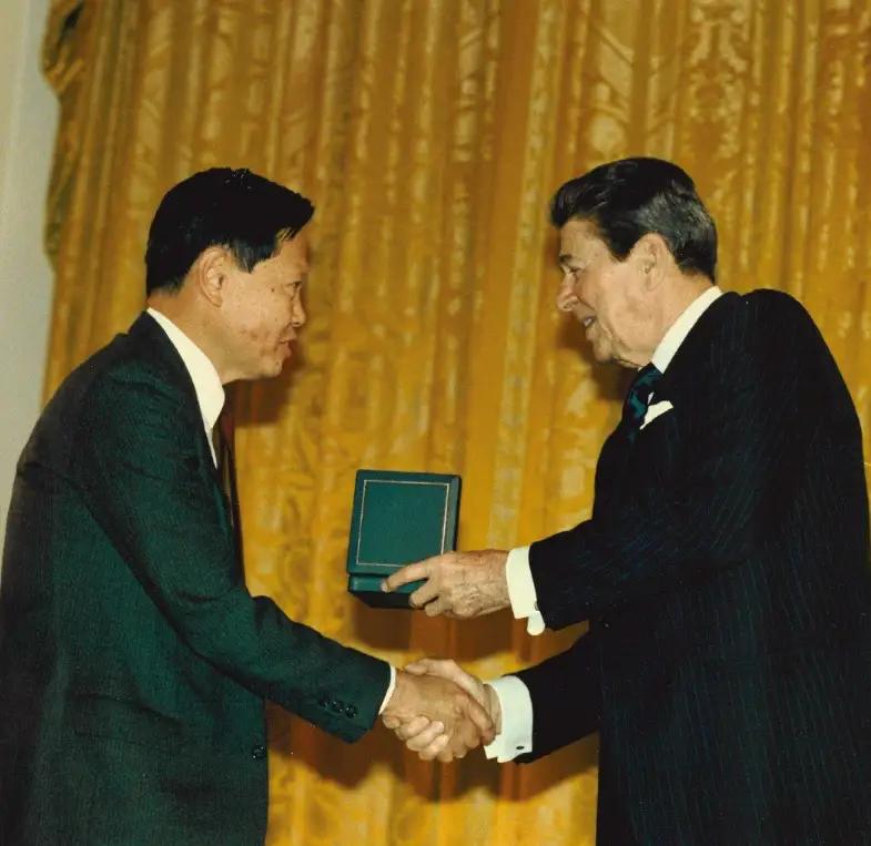 1986年,杨振宁获得美国国家科学奖章,由时任总统里根在白宫为其颁奖,这是美国政