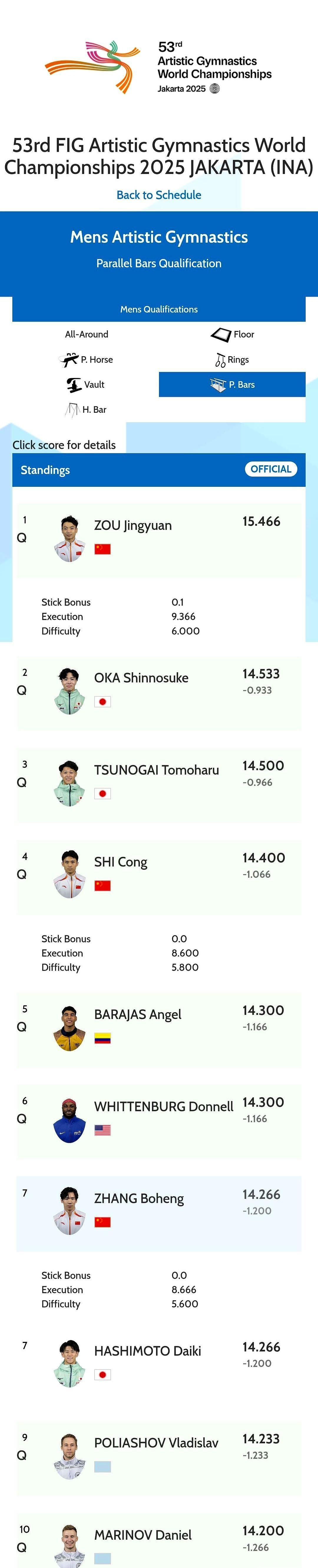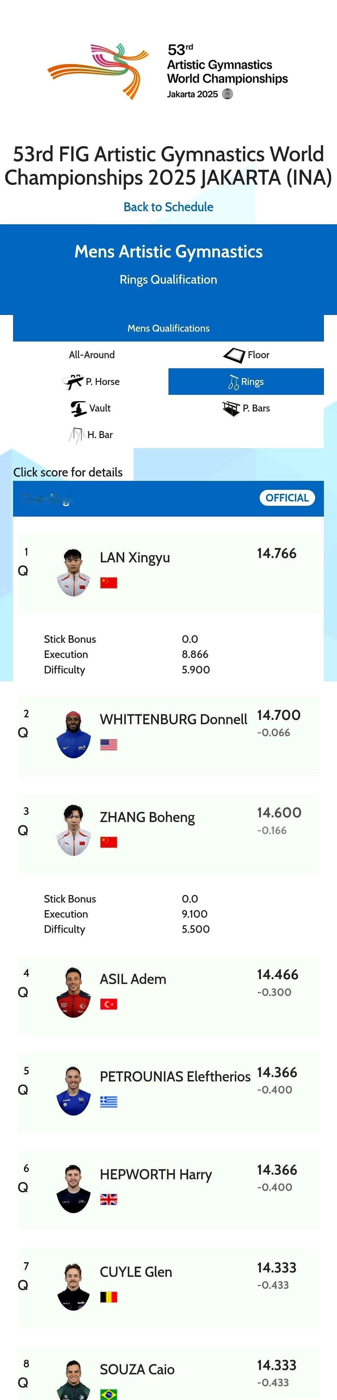 自由操没人进决赛,19年头一回。 邹敬园双杠稳得像焊死的,兰星宇吊环一上场,全场都屏住呼吸。 张博恒全能第三,单杠能冲,双杠? 队里俩名额,他被卡在了门外。 中国体操这次真不藏着掖了。 自由操掉链子? 立马把全运会的黄明淇、杨皓楠调回来,连巴西传奇海波里托都请到北京,手把手教落地。 不是补课,是开小灶,目标就一个:墨尔本打翻身仗,洛杉矶不拖后腿。 决赛夜,张博恒扛着全能冲金,兰星宇吊环第一个上,压不住的气场。 邹敬园最后一个出场,双杠一摆,全世界都知道——这金牌,早就在他手里了。 没人能抢,也抢不走。