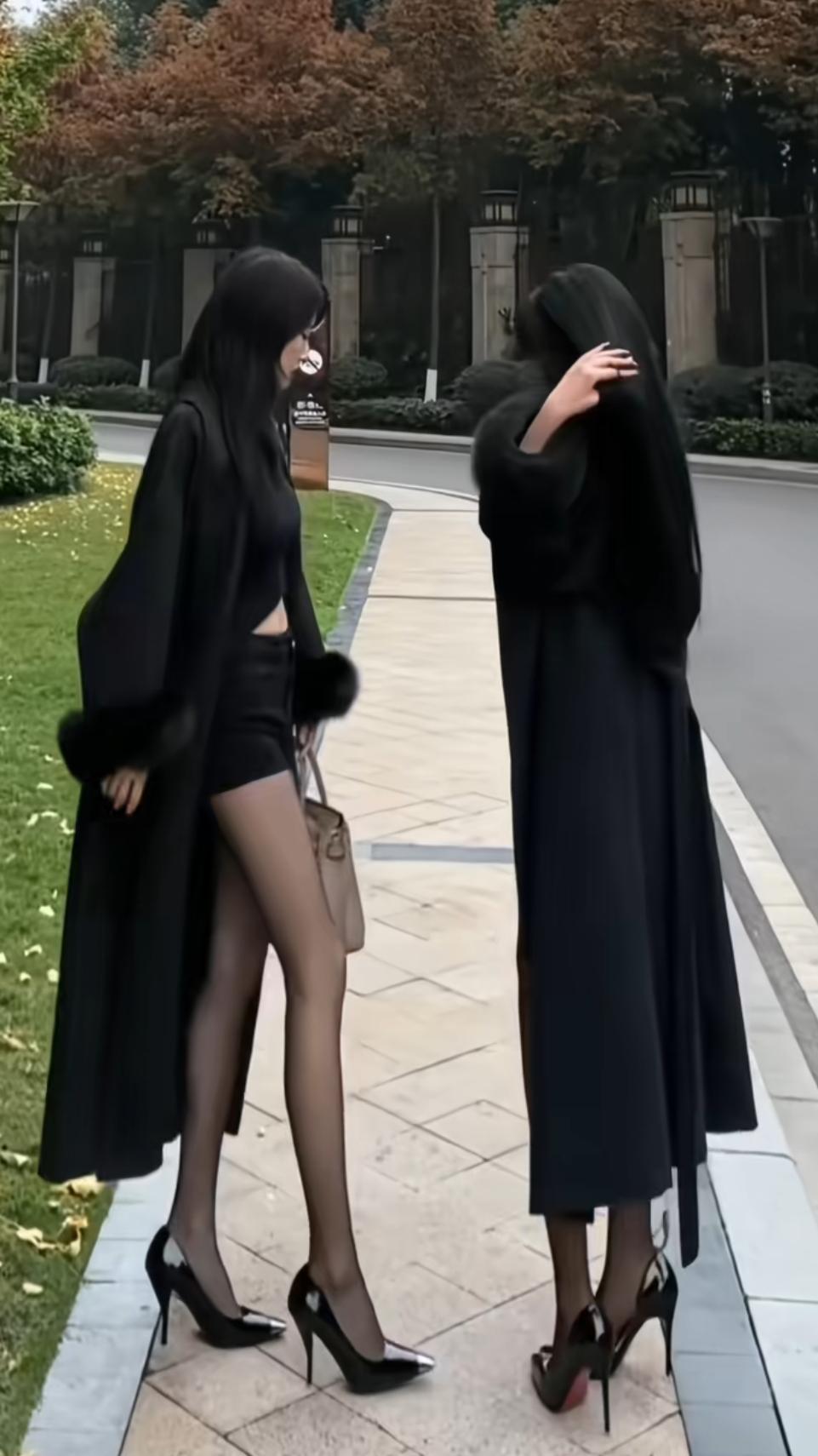 天气渐寒,厚黑穿搭盛行!白色套裙肉丝高跟穿搭会不会在职场很另类?你身边的精致女人
